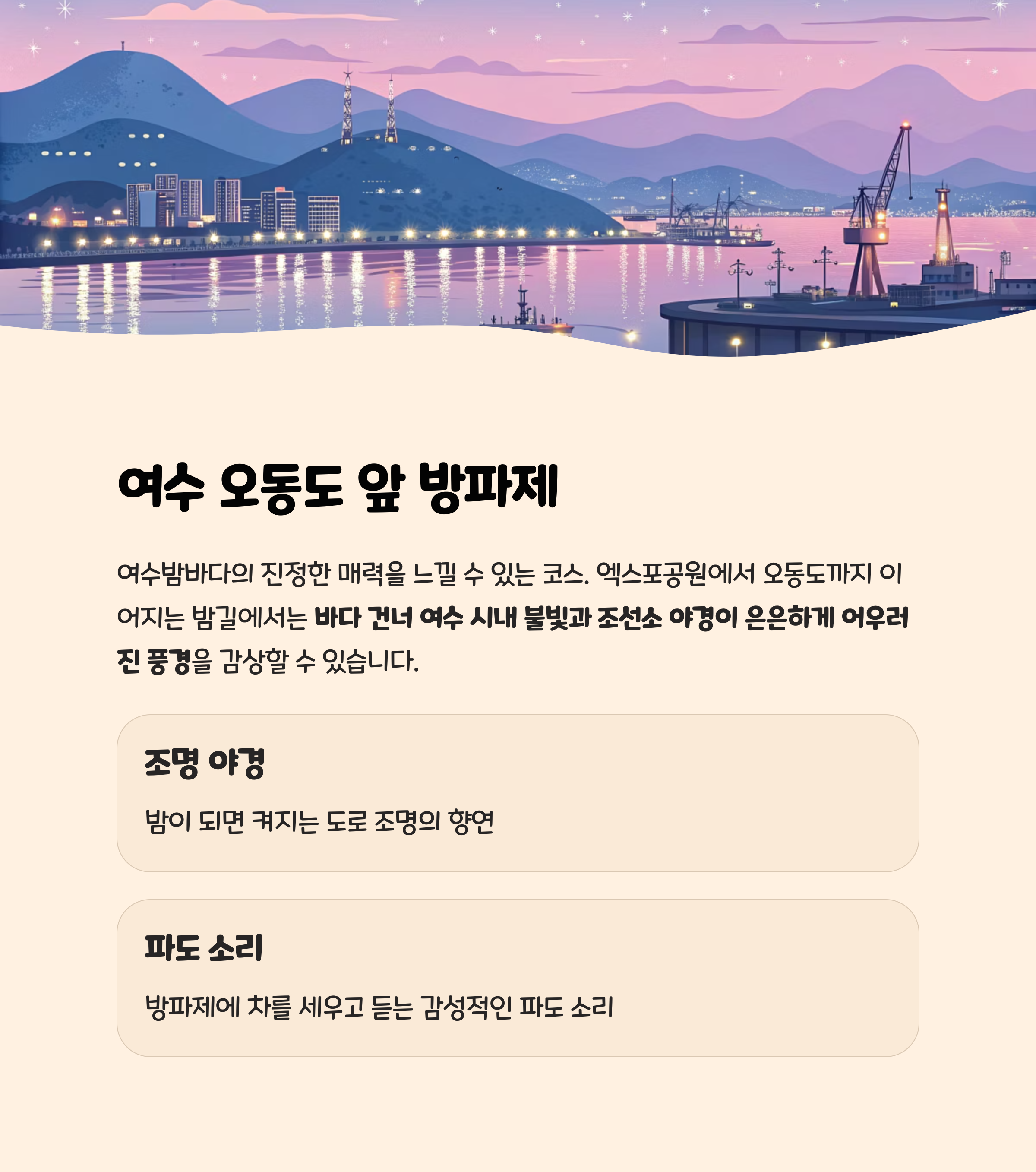 여수밤바다가 왜 유명한지를 보여주는 코스입니다.