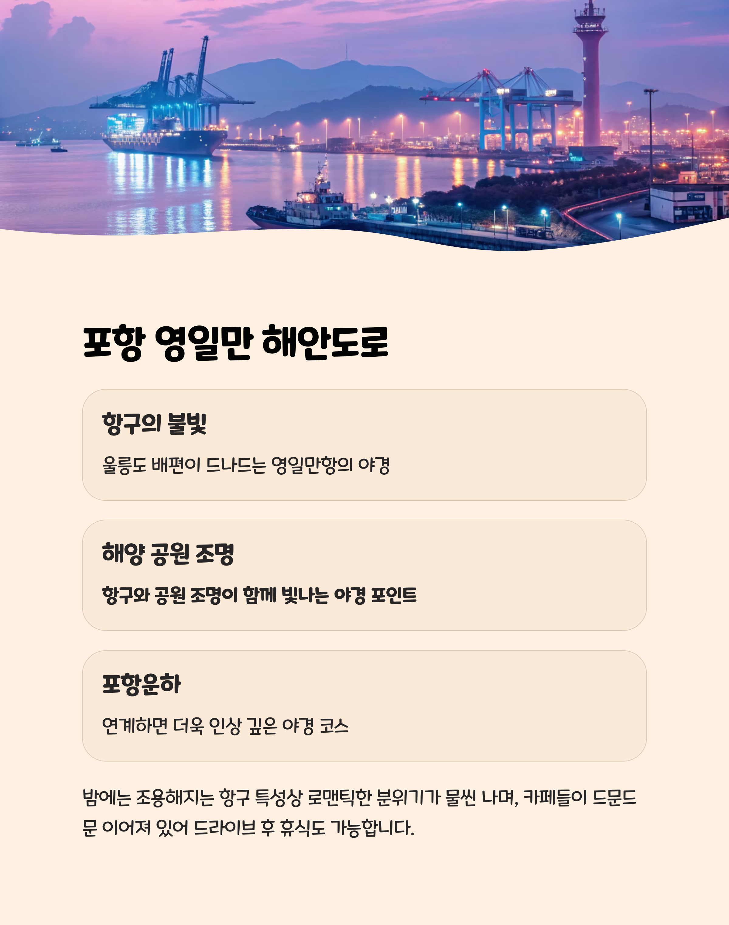 특히 포항운하 야경과 연계하면 더욱 인상 깊은 코스가 됩니다.