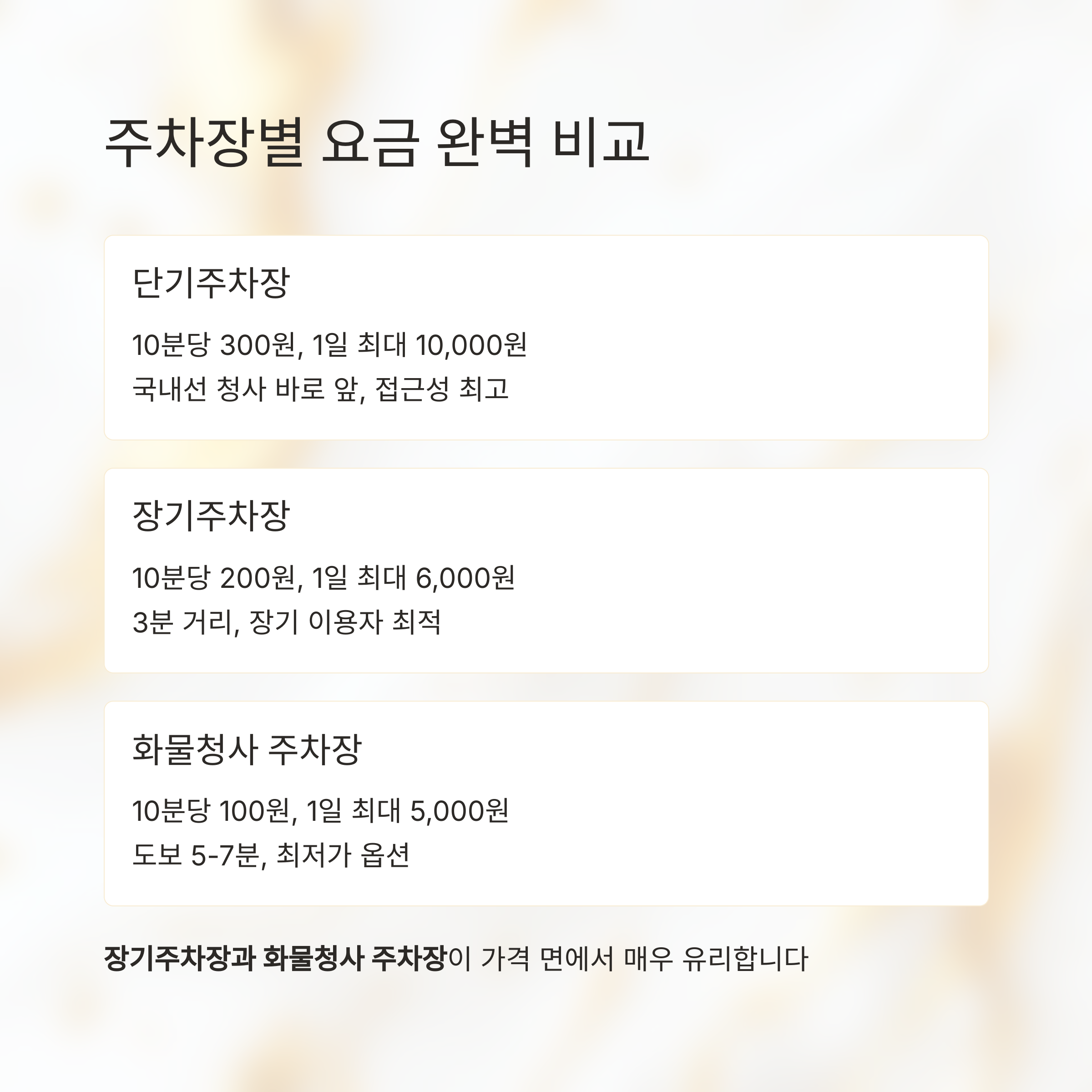 특히 국내선 이용자라면 장기 주차장을 활용하면 부담을 더 줄일 수 있습니다