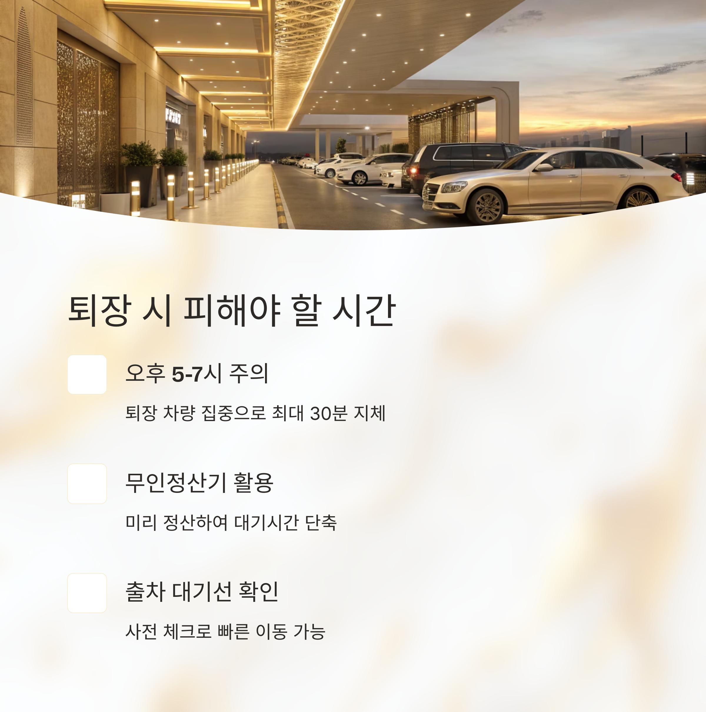차량 출차 대기선을 미리 확인해두면 훨씬 빠르게 이동할 수 있습니다