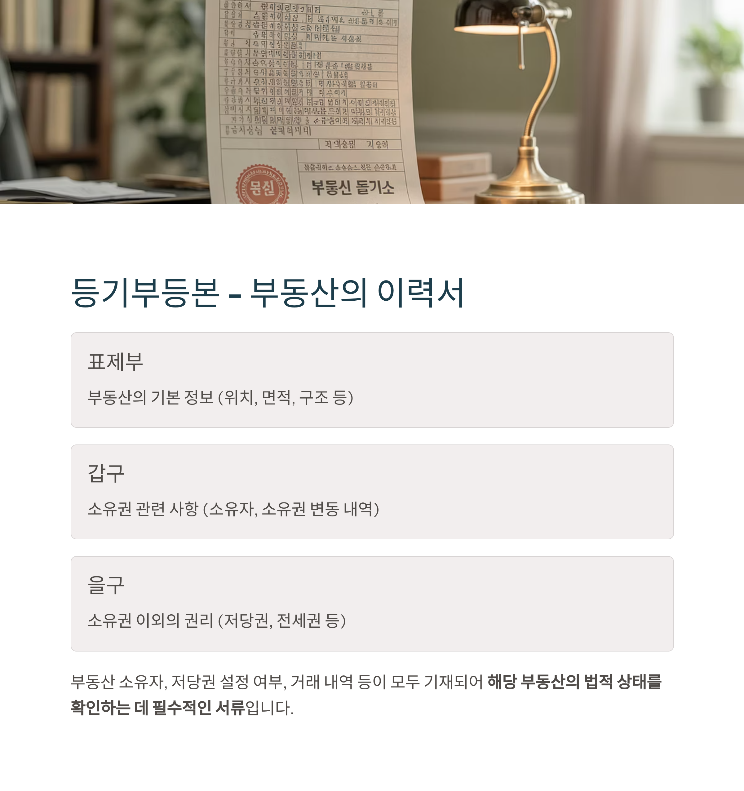 해당 부동산의 법적 상태를 확인하는 데 필수적인 서류입니다