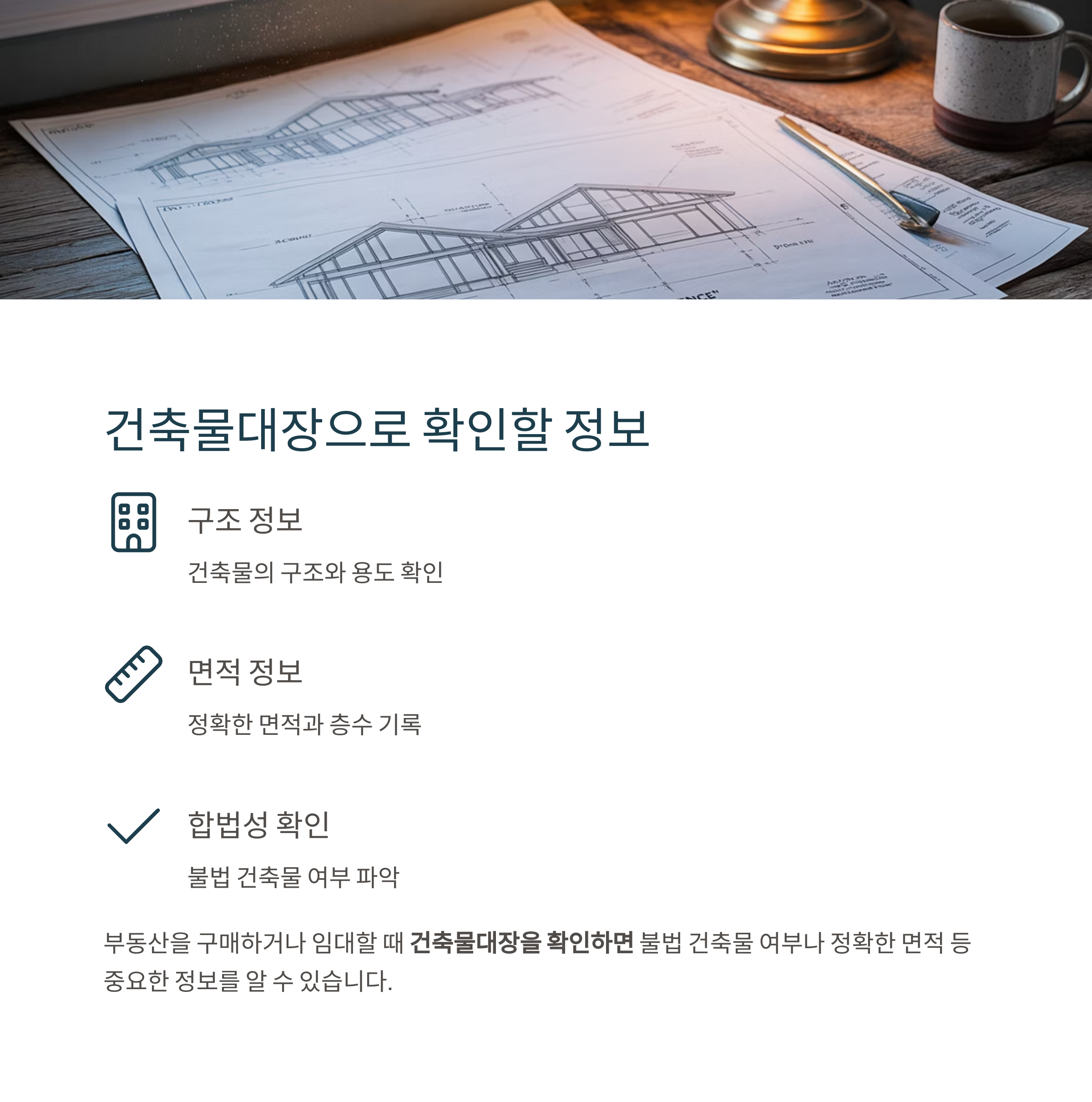 불법 건축물 여부나 정확한 면적 등 중요한 정보를 알 수 있습니다
