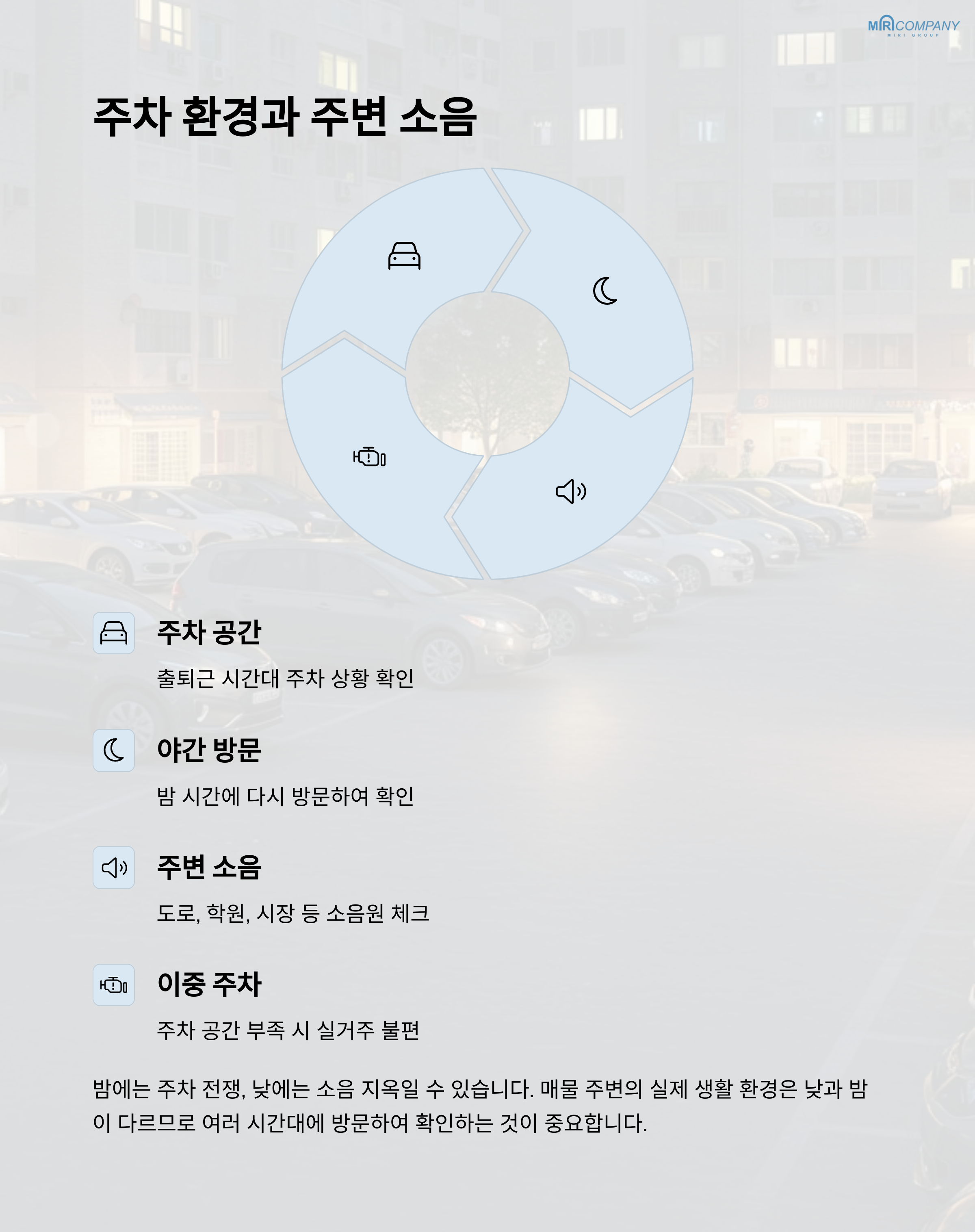 주차 환경과 주변 소음 확인