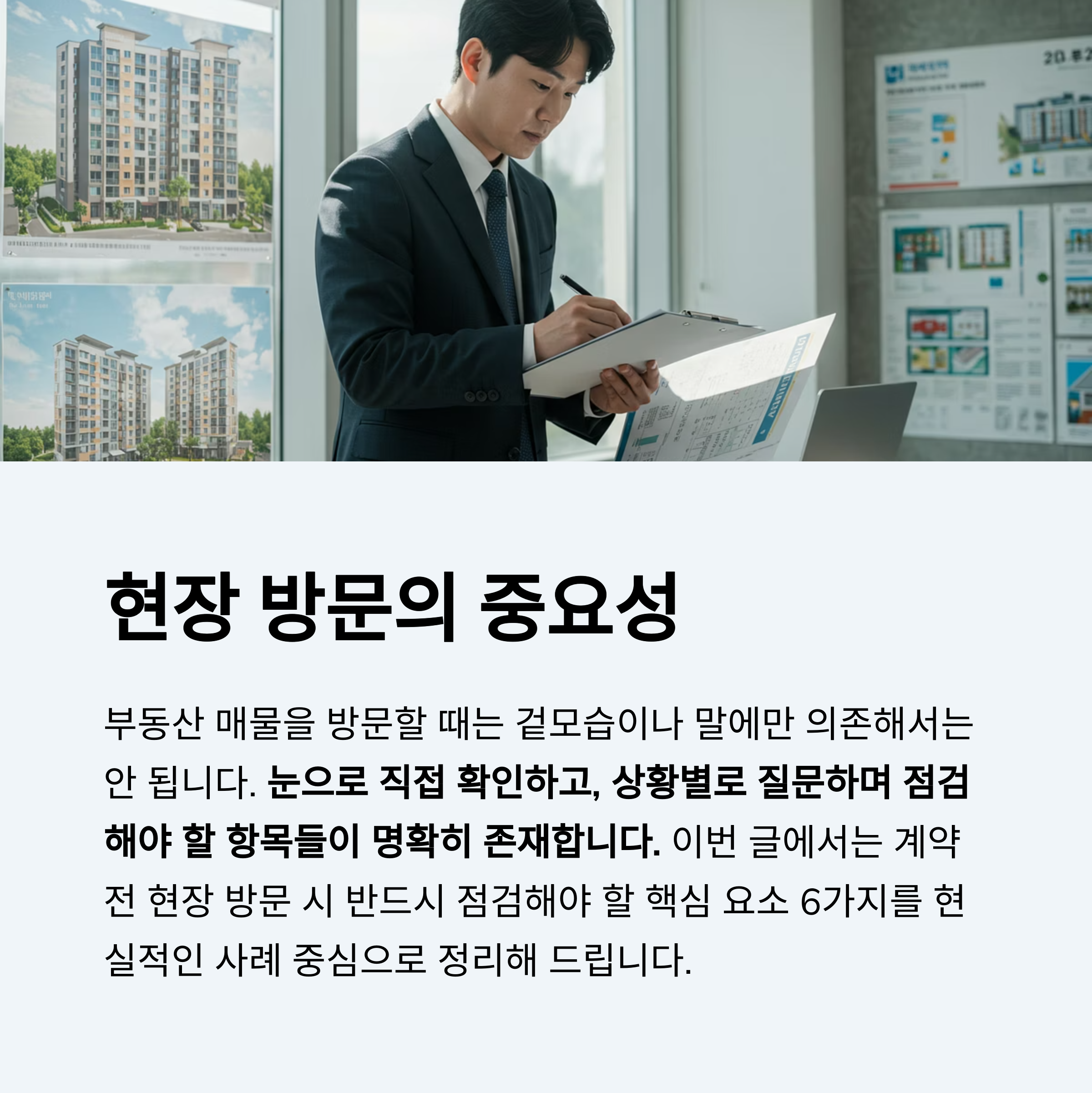 이번 글에서는 계약 전 현장 방문 시 반드시 점검해야 할 핵심 요소 6가지를