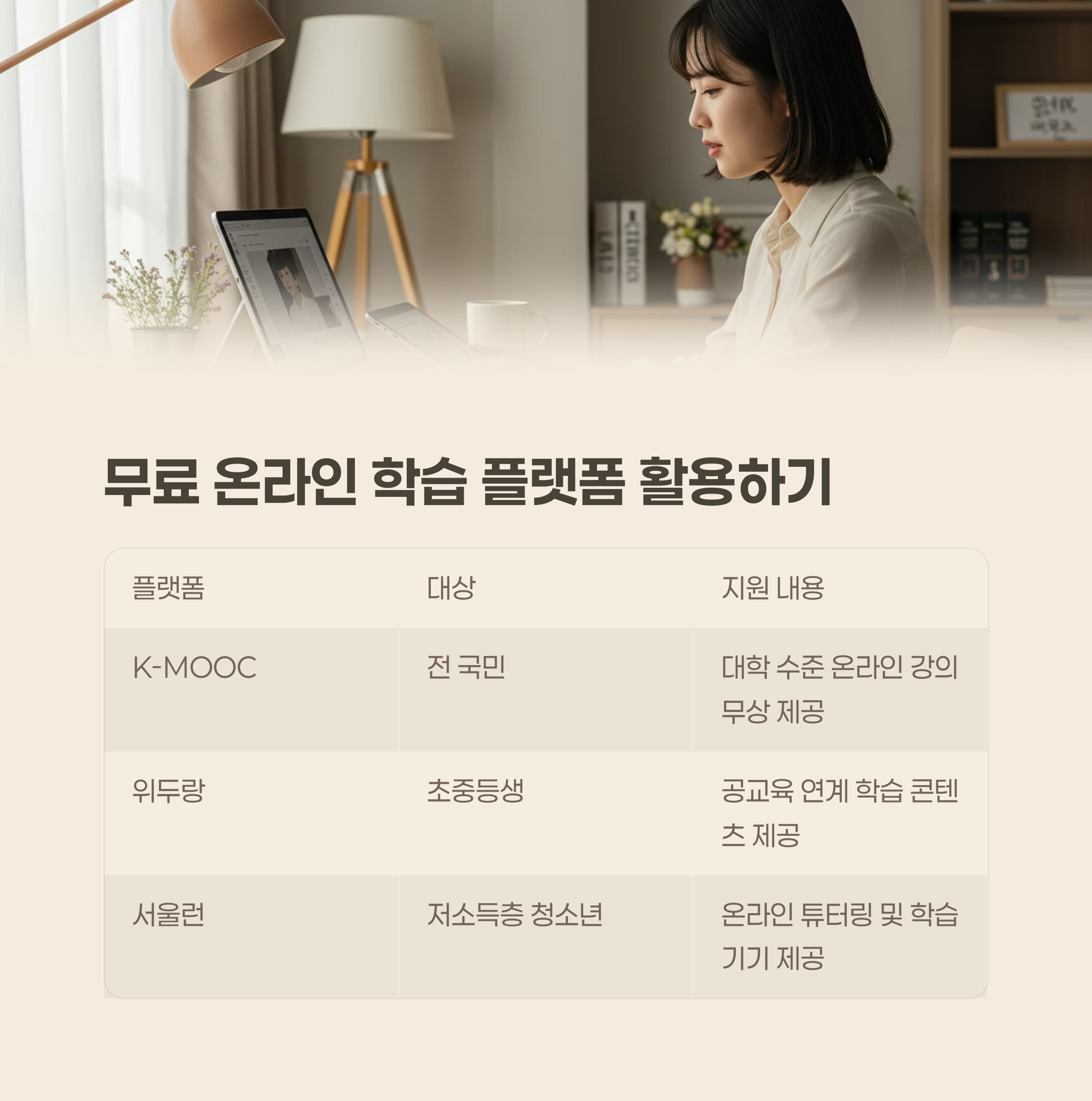 서울런 저소득층 청소년 온라인 튜터링 및 학습기기 제공