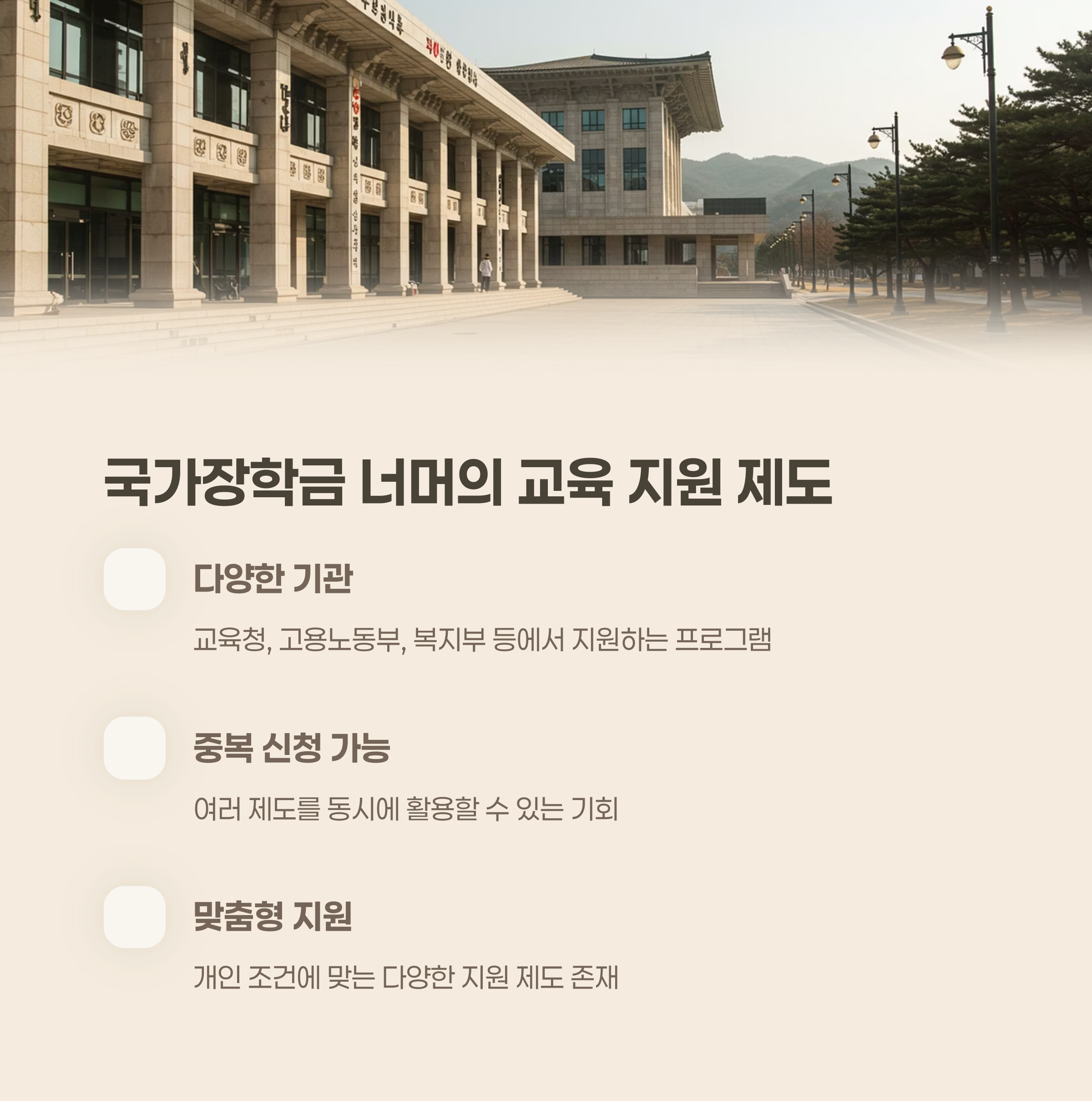 국가장학금만으로는 부족할 수 있지만, 다양한 제도를 함께 활용하면 큰 도움이 됩니다.