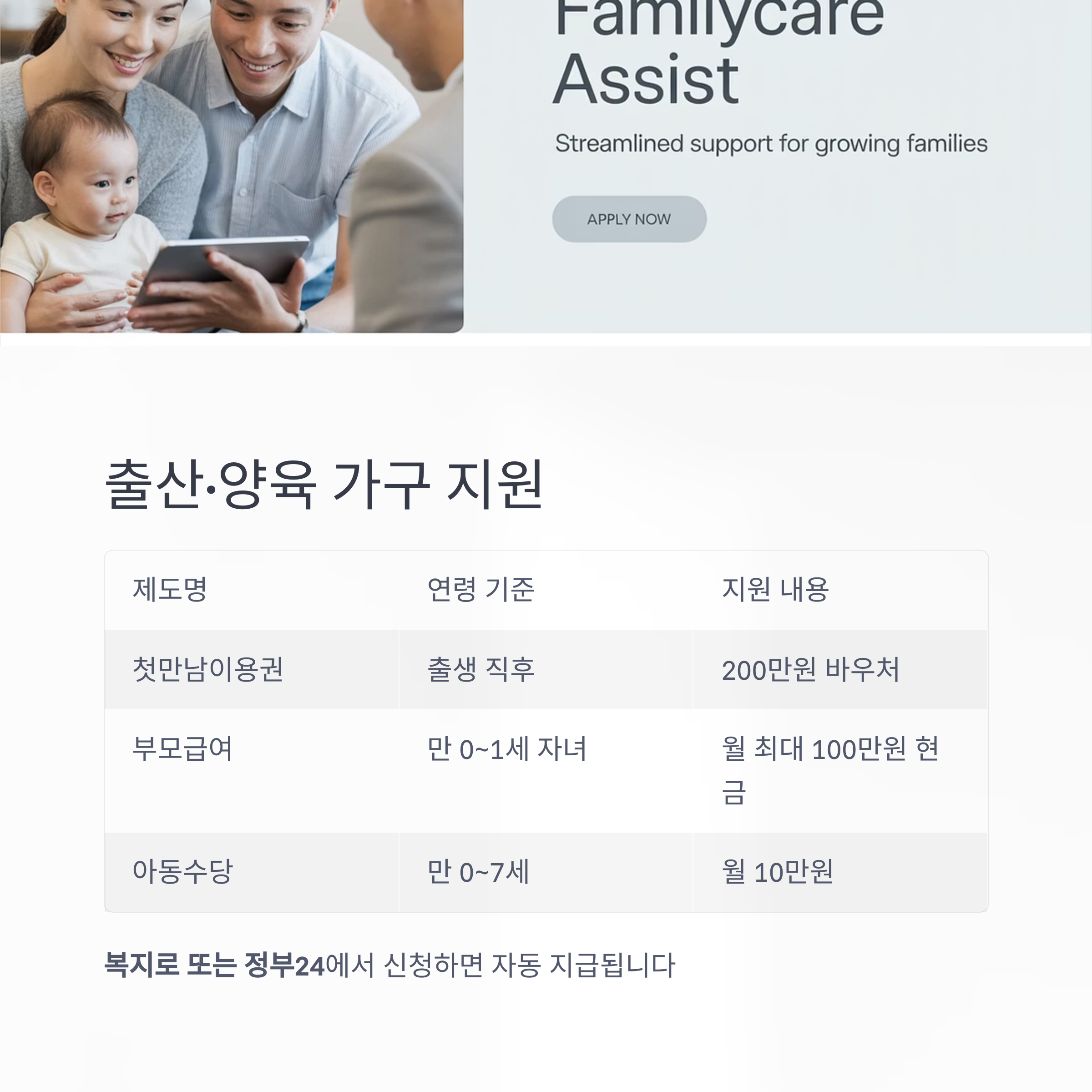 | 부모급여 | 만 0~1세 자녀 | 월 최대 100만 원 현금 |