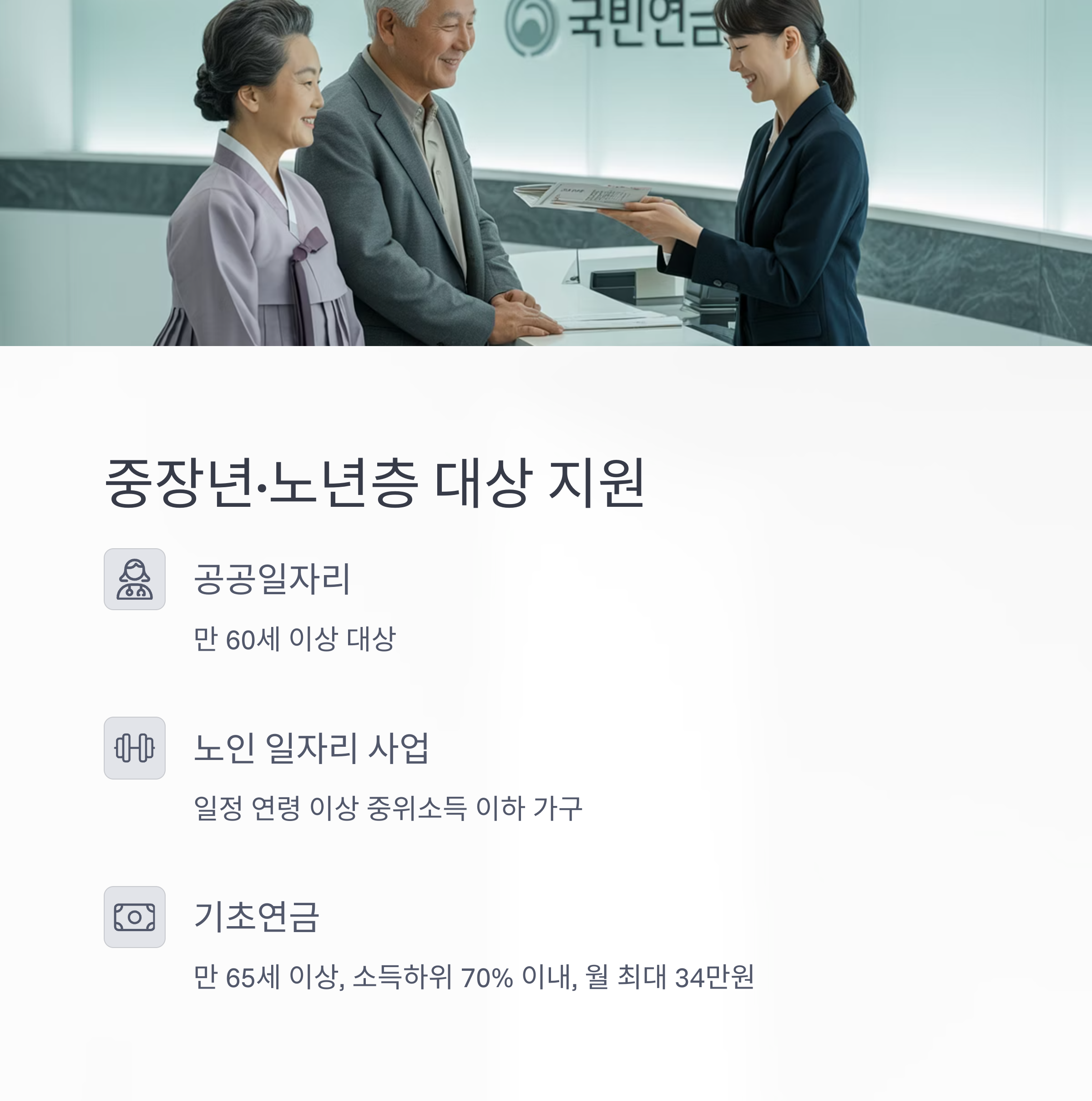 중장년·노년층 대상 일자리 지원 및 기초연금