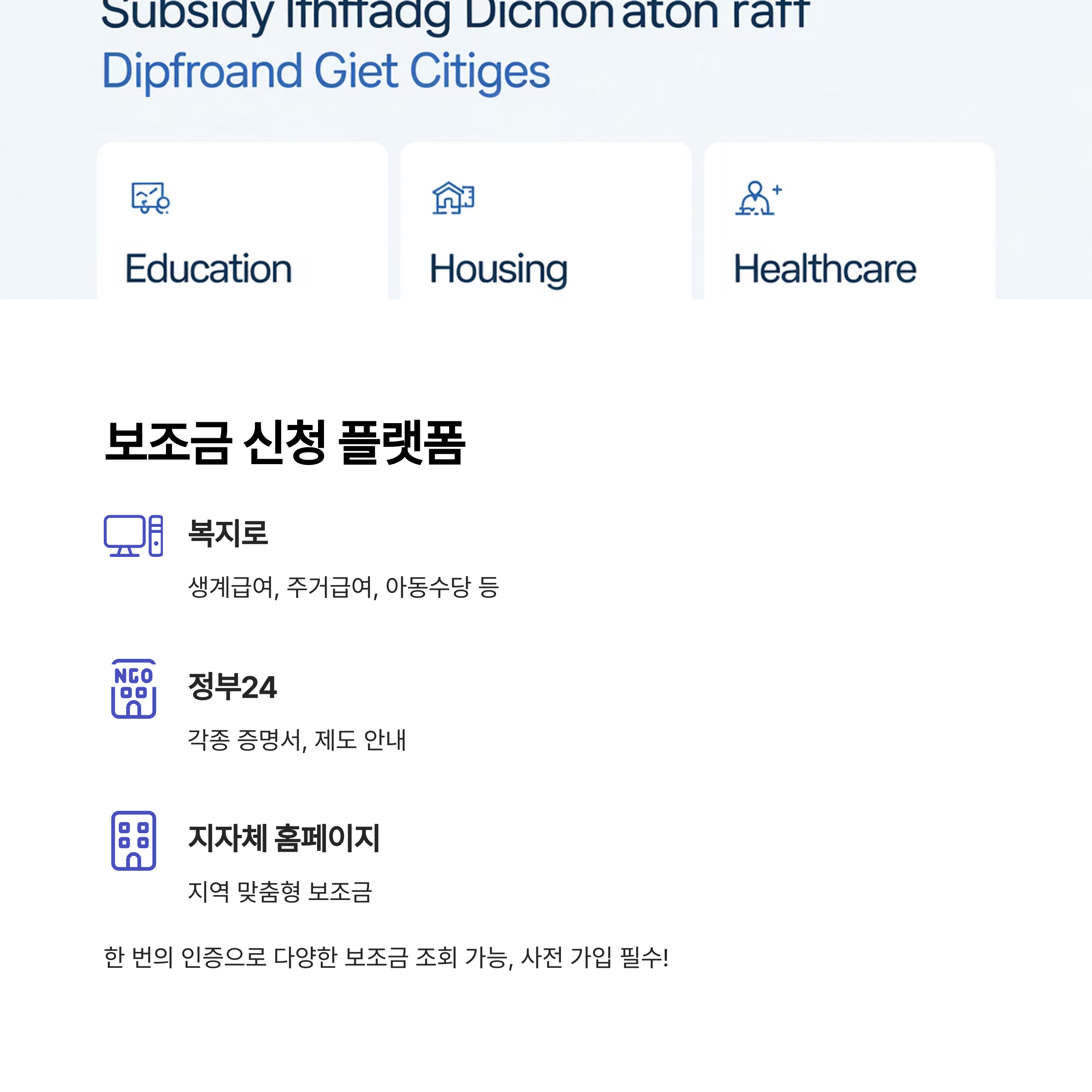 한 번의 인증으로 다양한 보조금 조회가 가능하므로 반드시 사전 가입을 해두는 것이 유리합니다