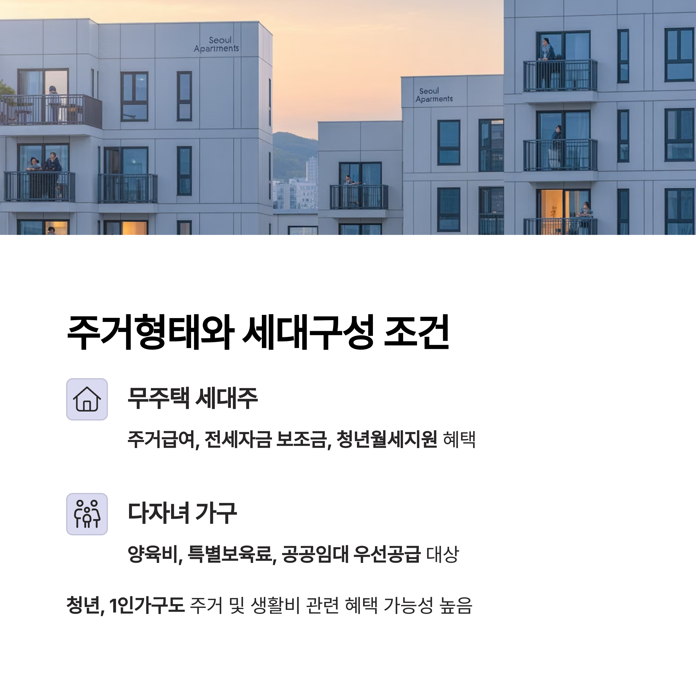 특히 청년, 무주택자, 1인가구, 다자녀가구는 주거 및 생활비 관련 혜택을 받을 가능성이 높습니다