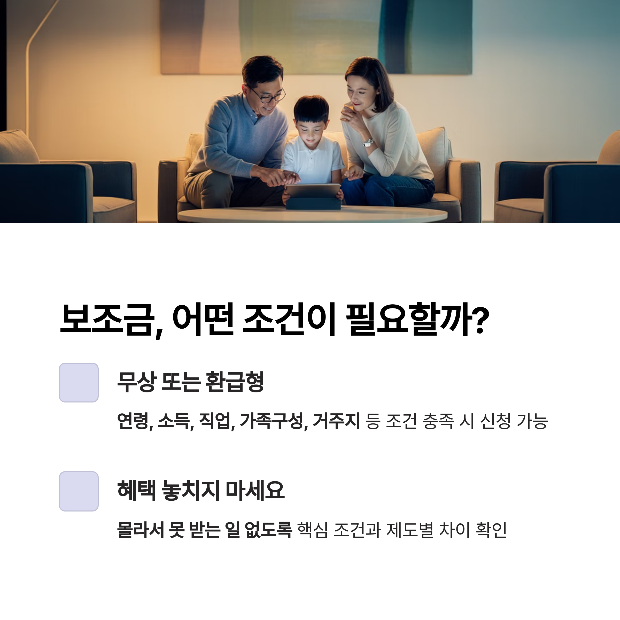 몰라서 못 받는 일 없도록 핵심 조건과 제도별 차이를 정확히 짚어드립니다