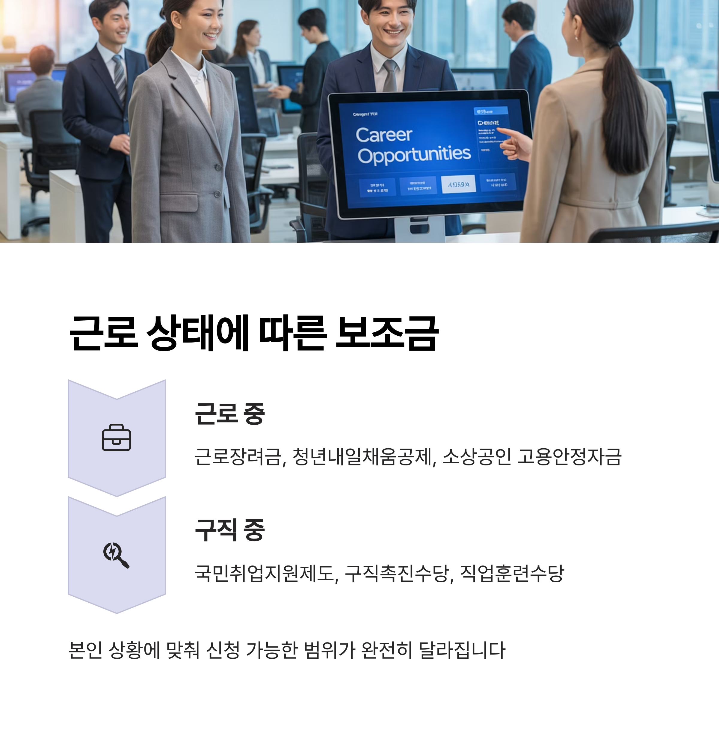 국민취업지원제도, 구직촉진수당, 직업훈련수당 등의 보조금이 주어집니다