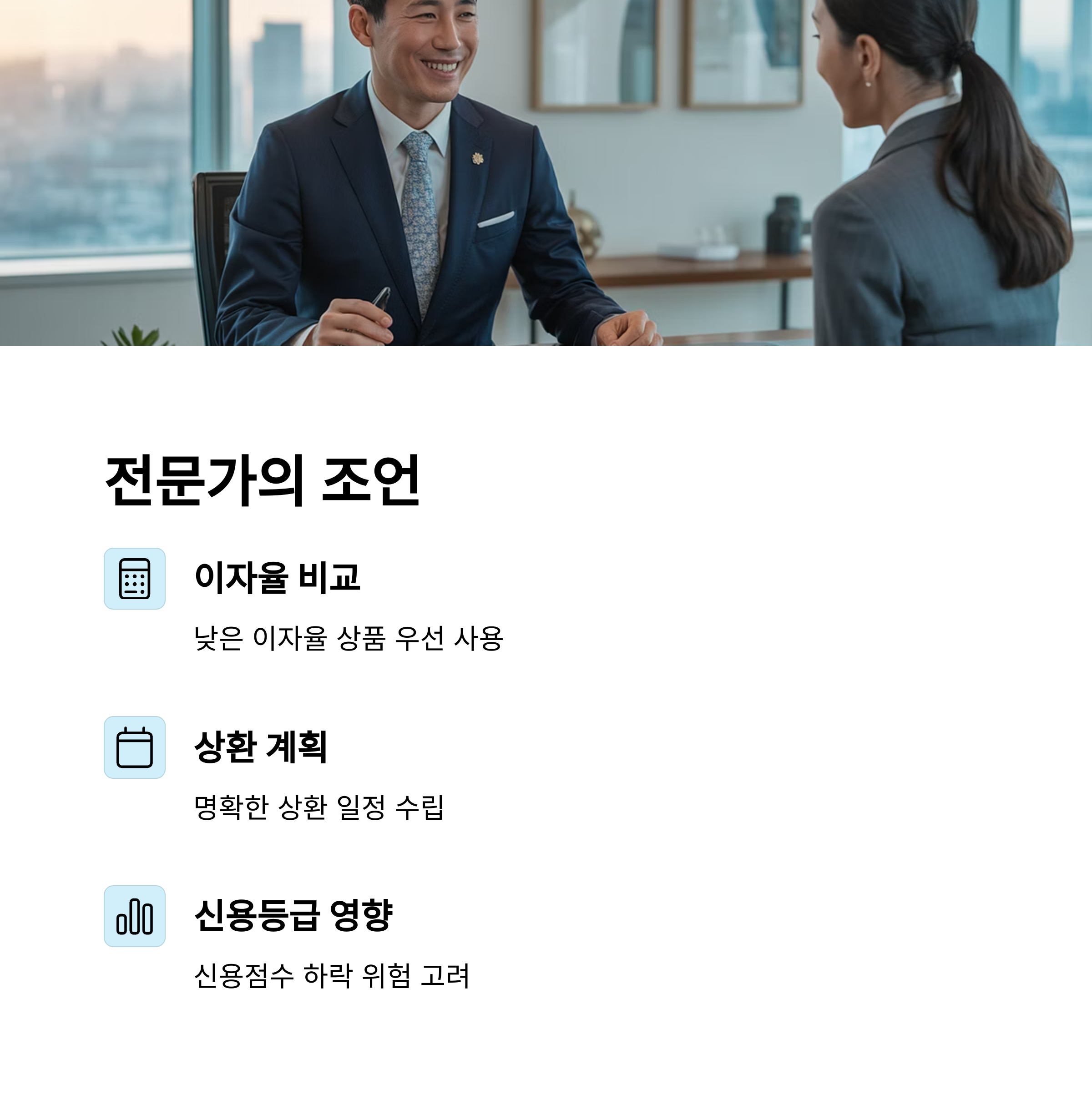 이자 부담과 상환 기간, 신용점수 하락 위험 등 각 상황별로 최적의 전략을 세우는 것이 필수입니다.