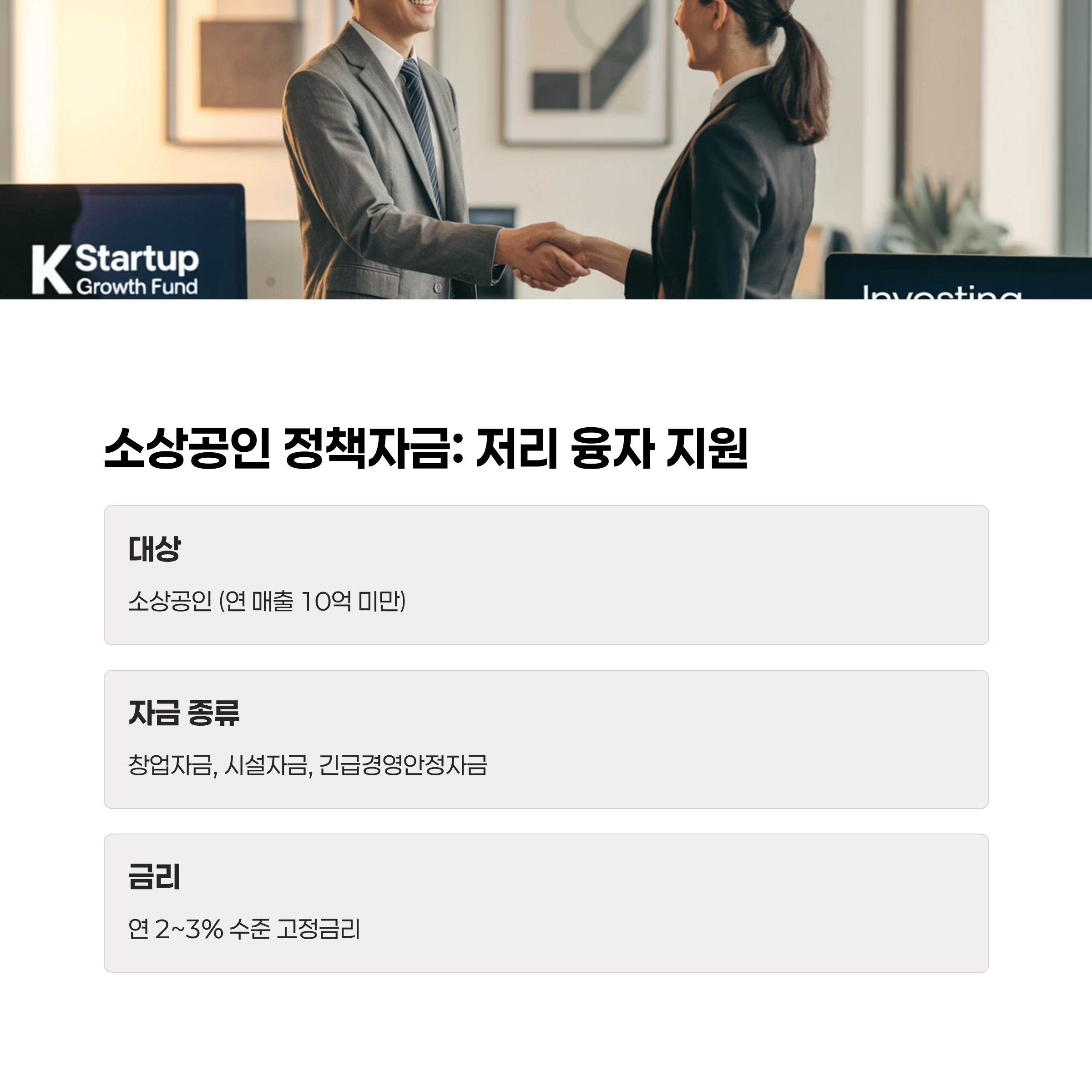기술 기반이 아닌 자영업자, 소상공인도 받을 수 있는 저리 융자 지원금입니다.