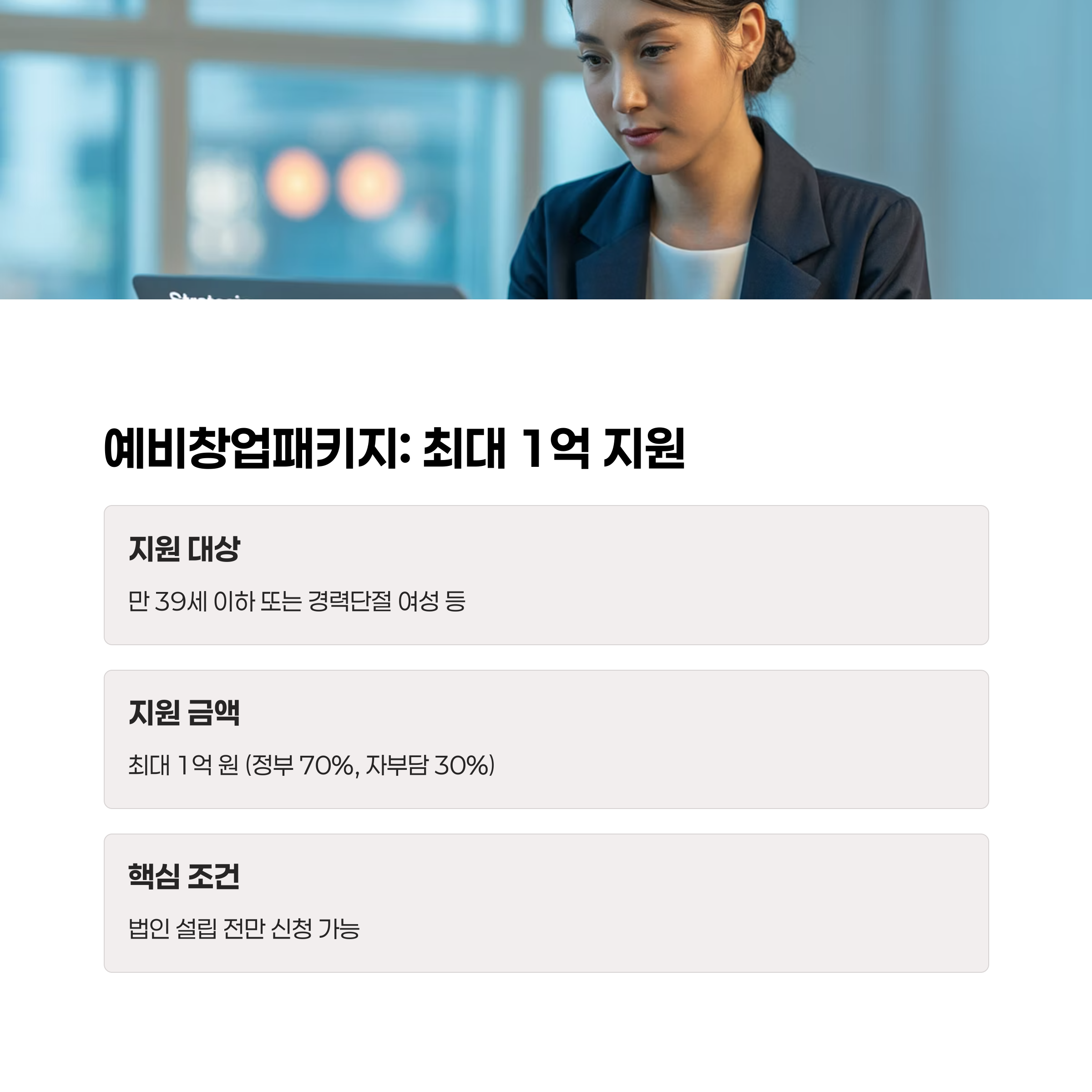 경력 단절 여성의 창업을 위한 맞춤형 지원금을 운영 중입니다.
