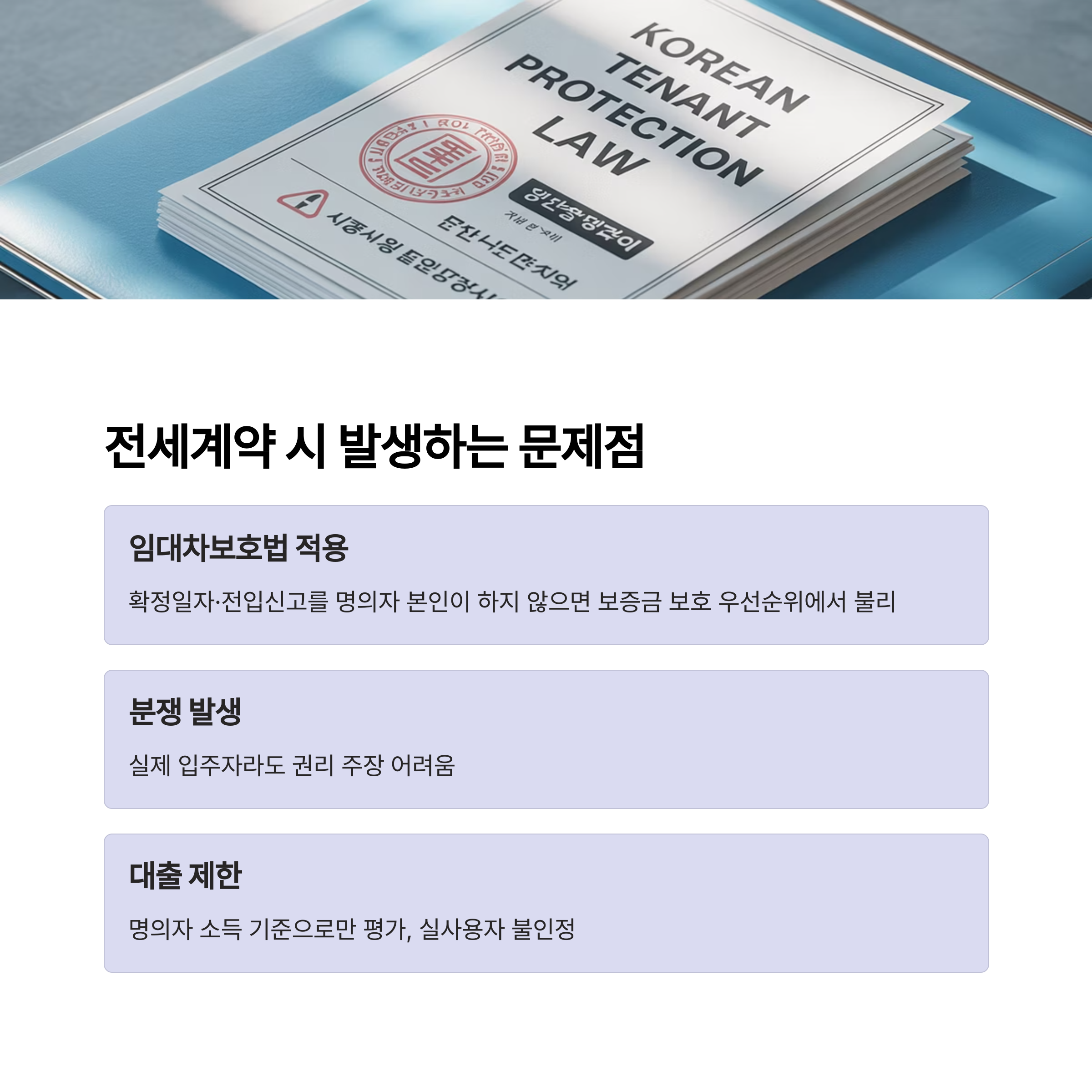 | 분쟁 발생 시 | 실제 입주자라도 권리 주장 어려움 |