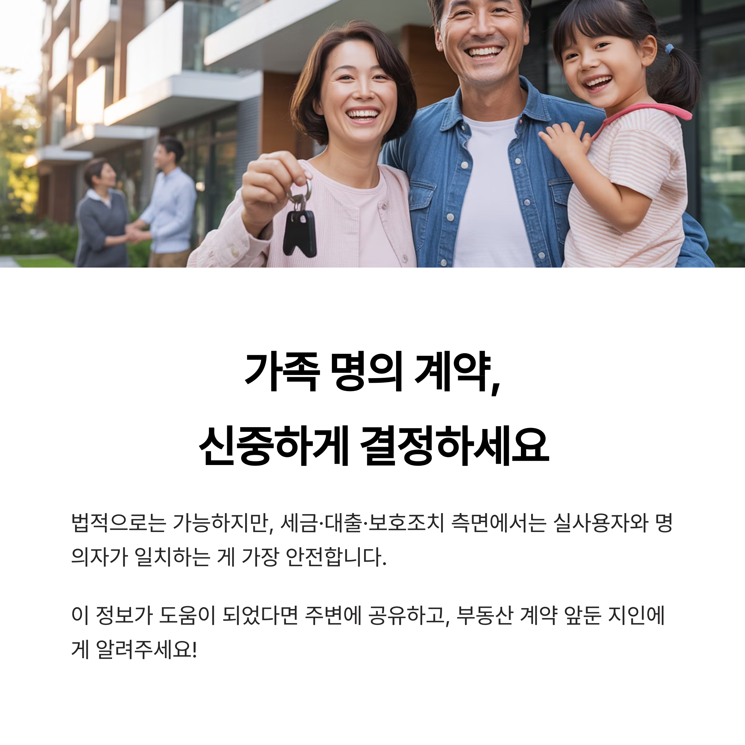 세금·대출·보호조치 측면에서는 실사용자와 명의자가 일치하는 게 가장 안전합니다.