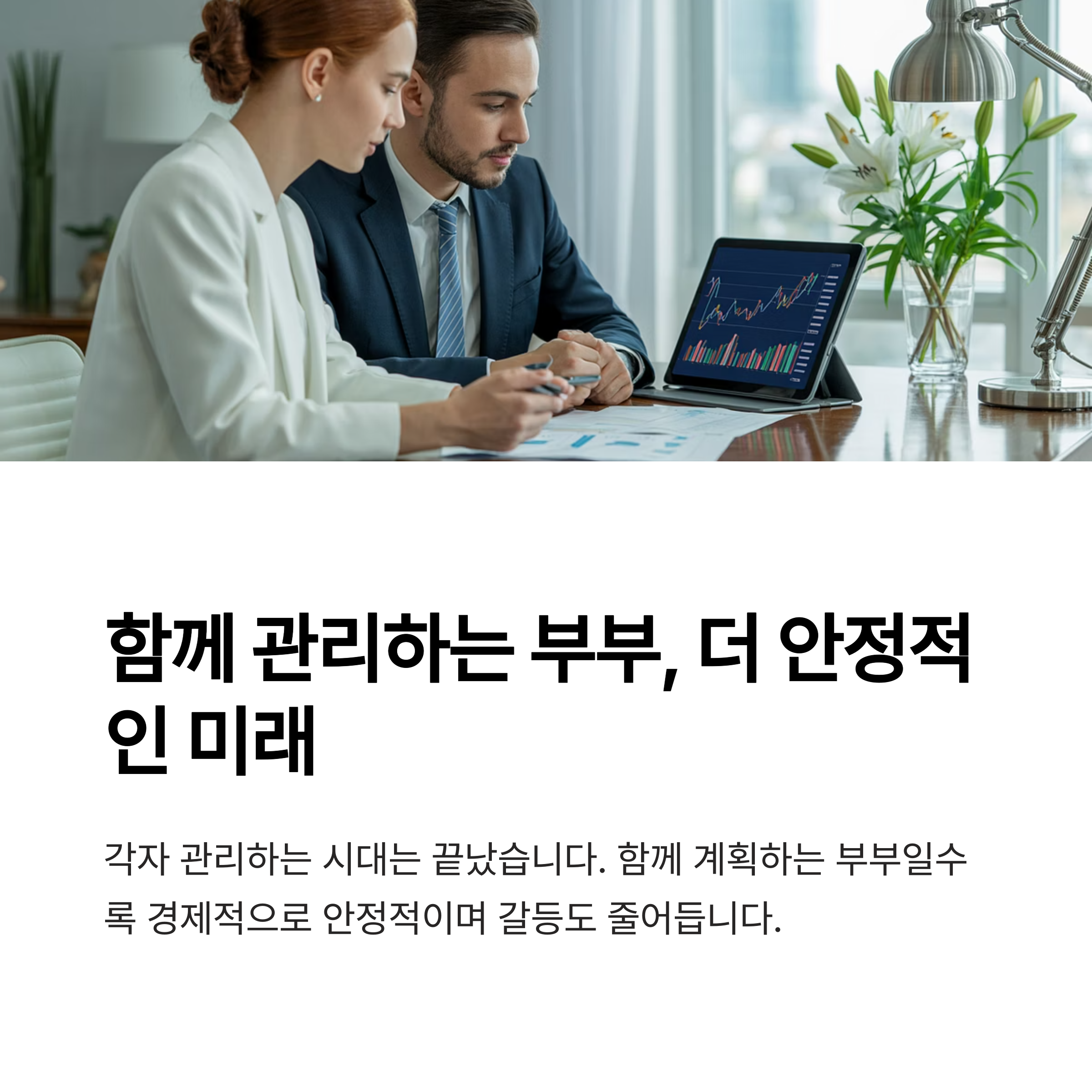 이제는 자산을 함께 관리하고 계획하는 부부일수록 경제적으로 더 안정적이며, 갈등도 줄어드는 경향이 뚜렷합니다.