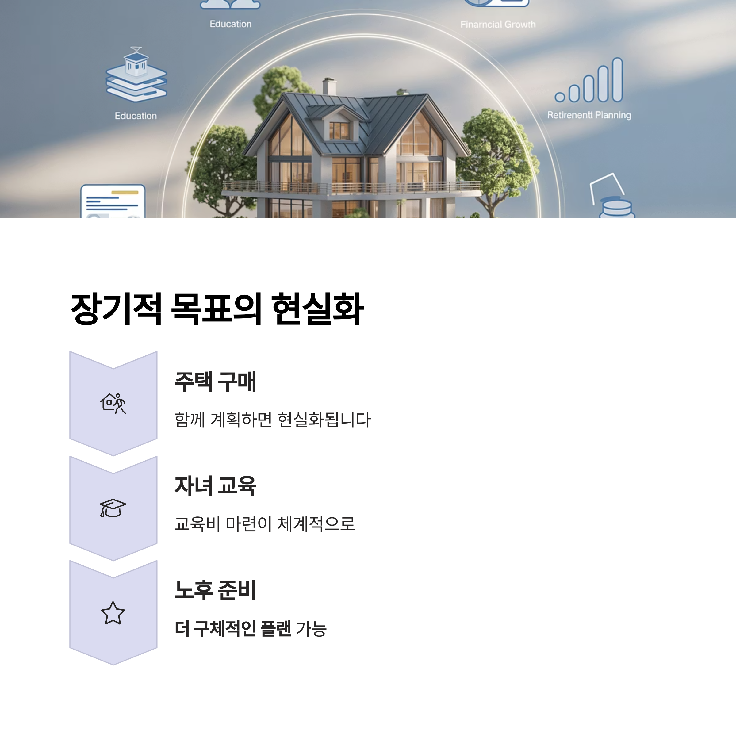 예를 들어, 자녀 교육비 마련, 노후 준비, 부동산 투자 계획 등