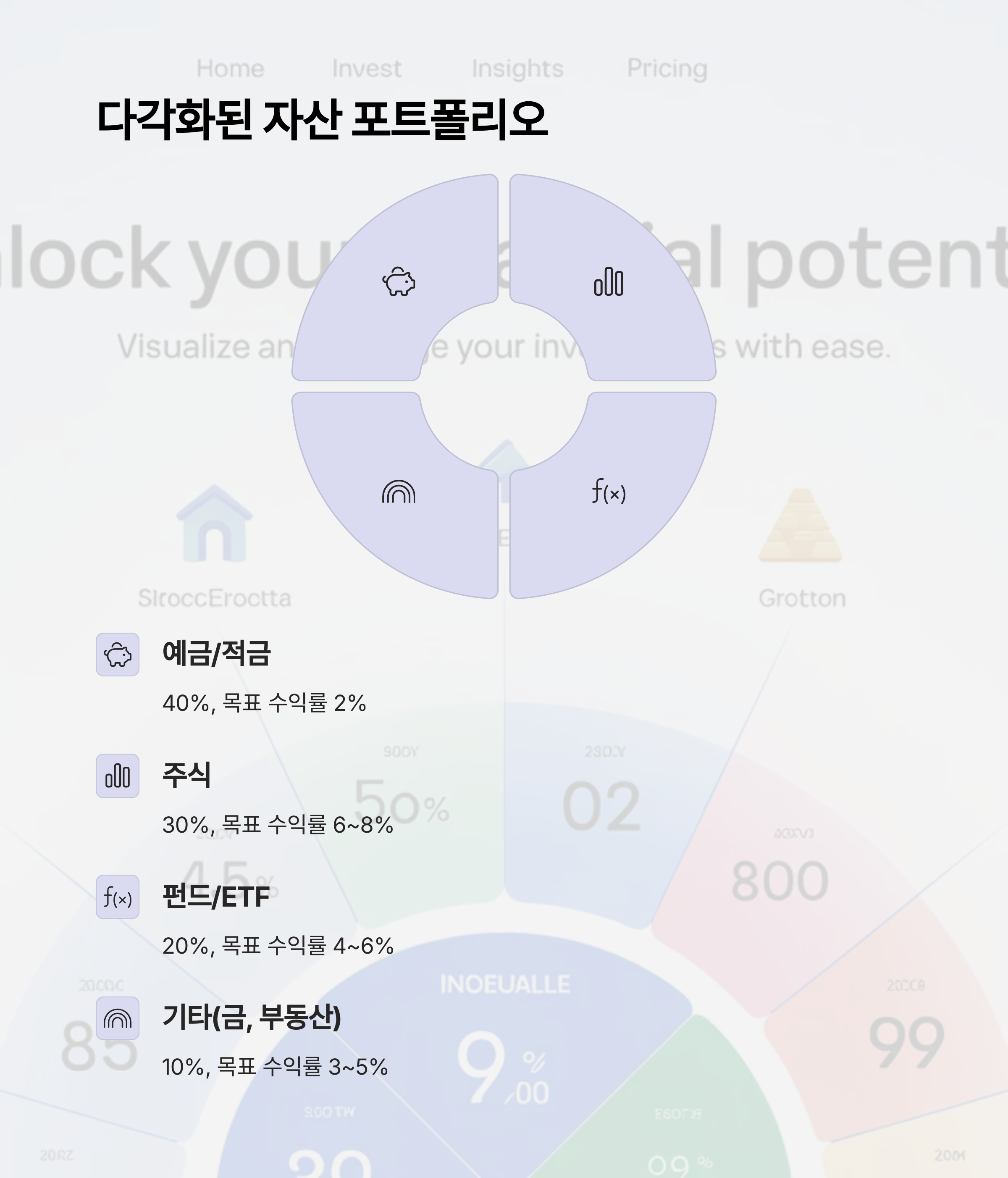 예시로 아래와 같이 투자 포트폴리오 구성이 가능해집니다: