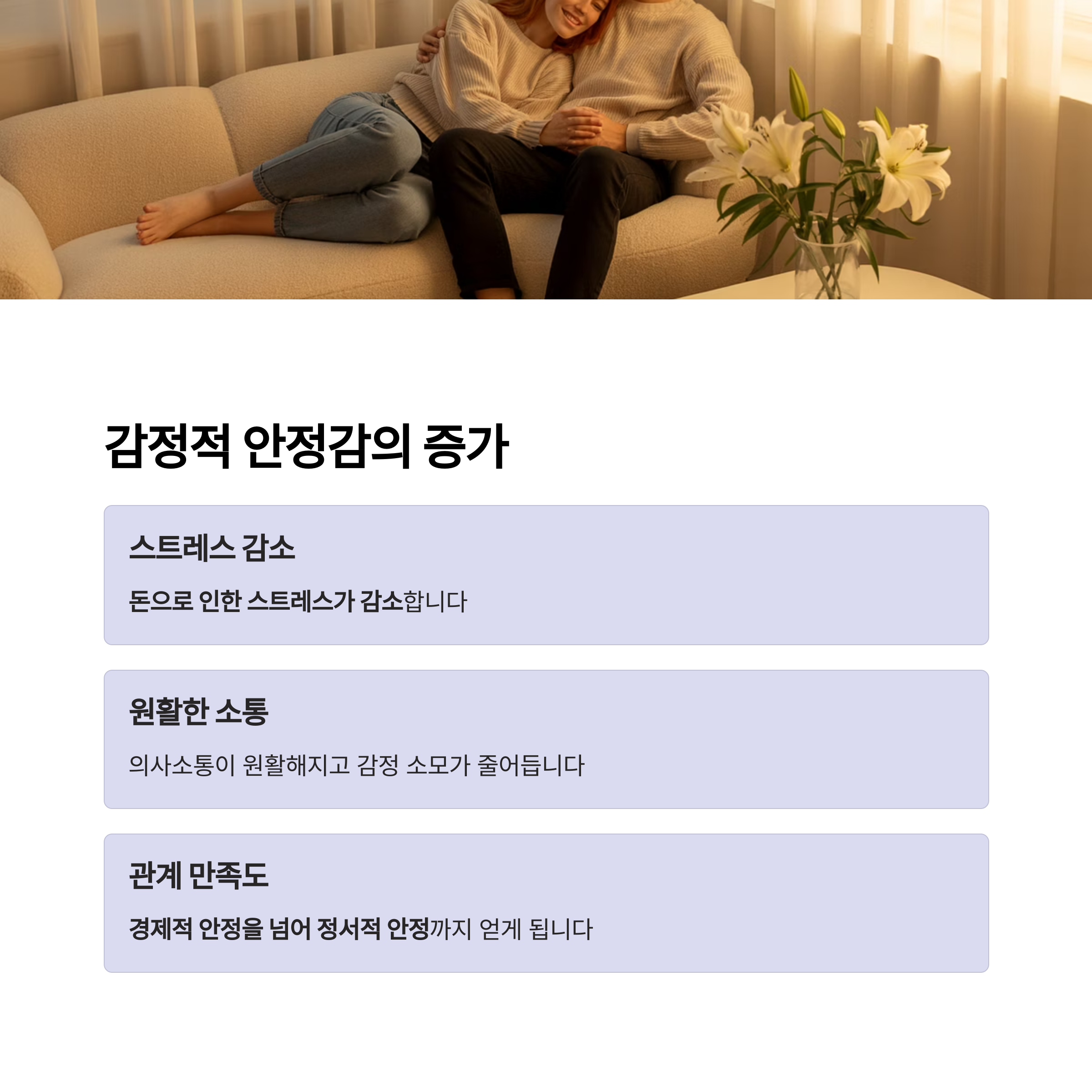 결국, 경제적 안정을 넘어 정서적 안정까지도 함께 얻게 되는 것입니다.