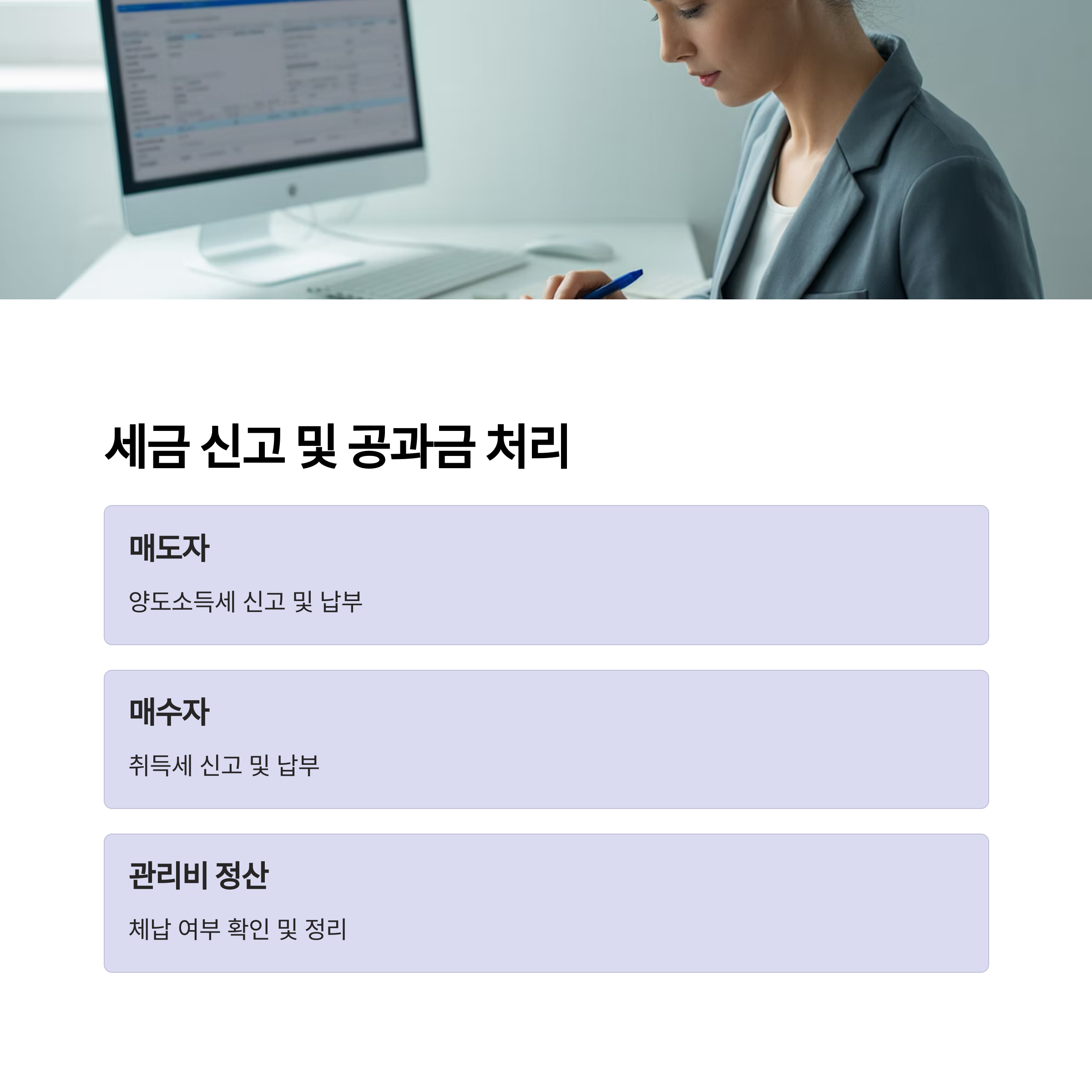 양도소득세를, 매수자는 취득세를 신고 및 납부해야 합니다.