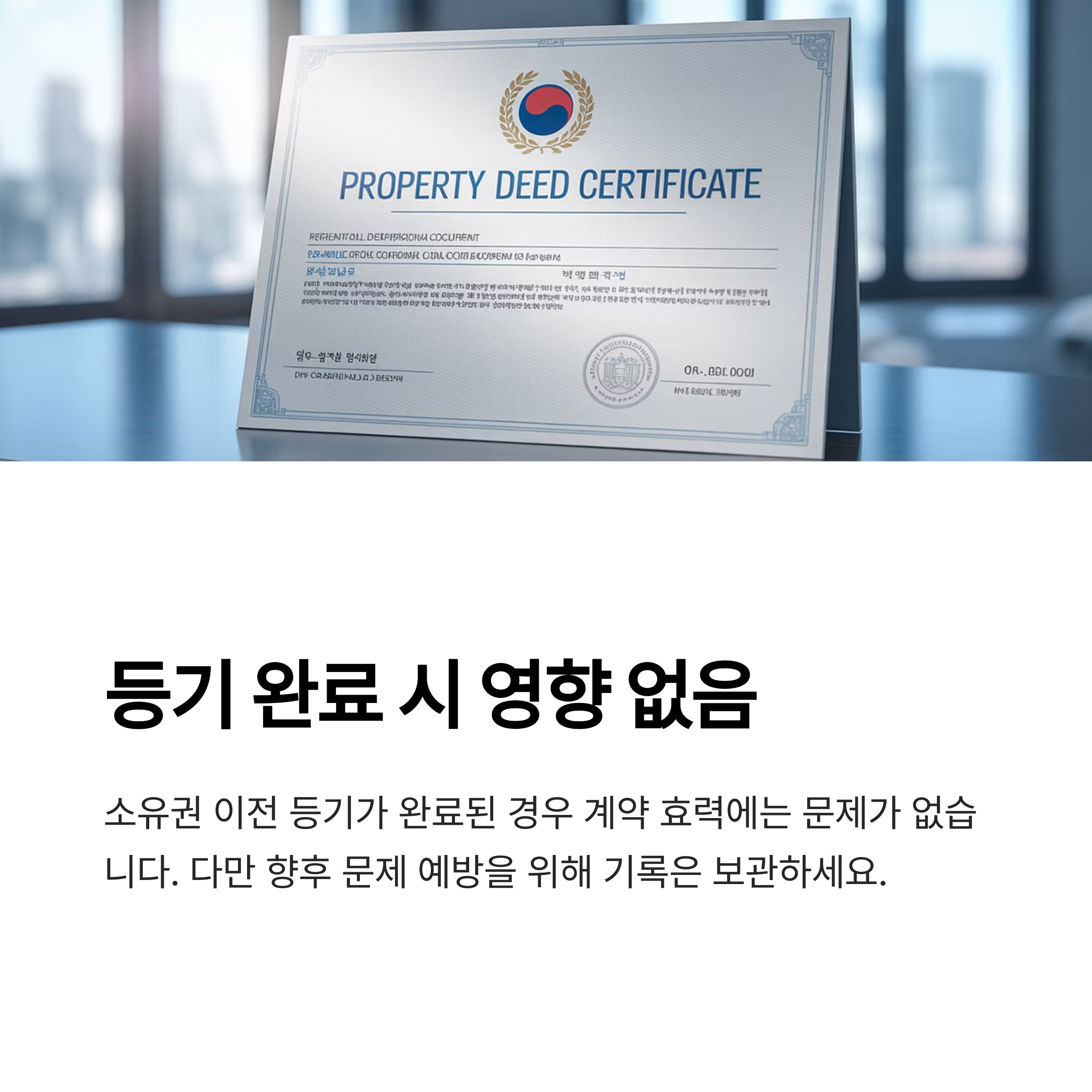 7. 부동산 등기 완료 시 계약서 유실 영향 없음