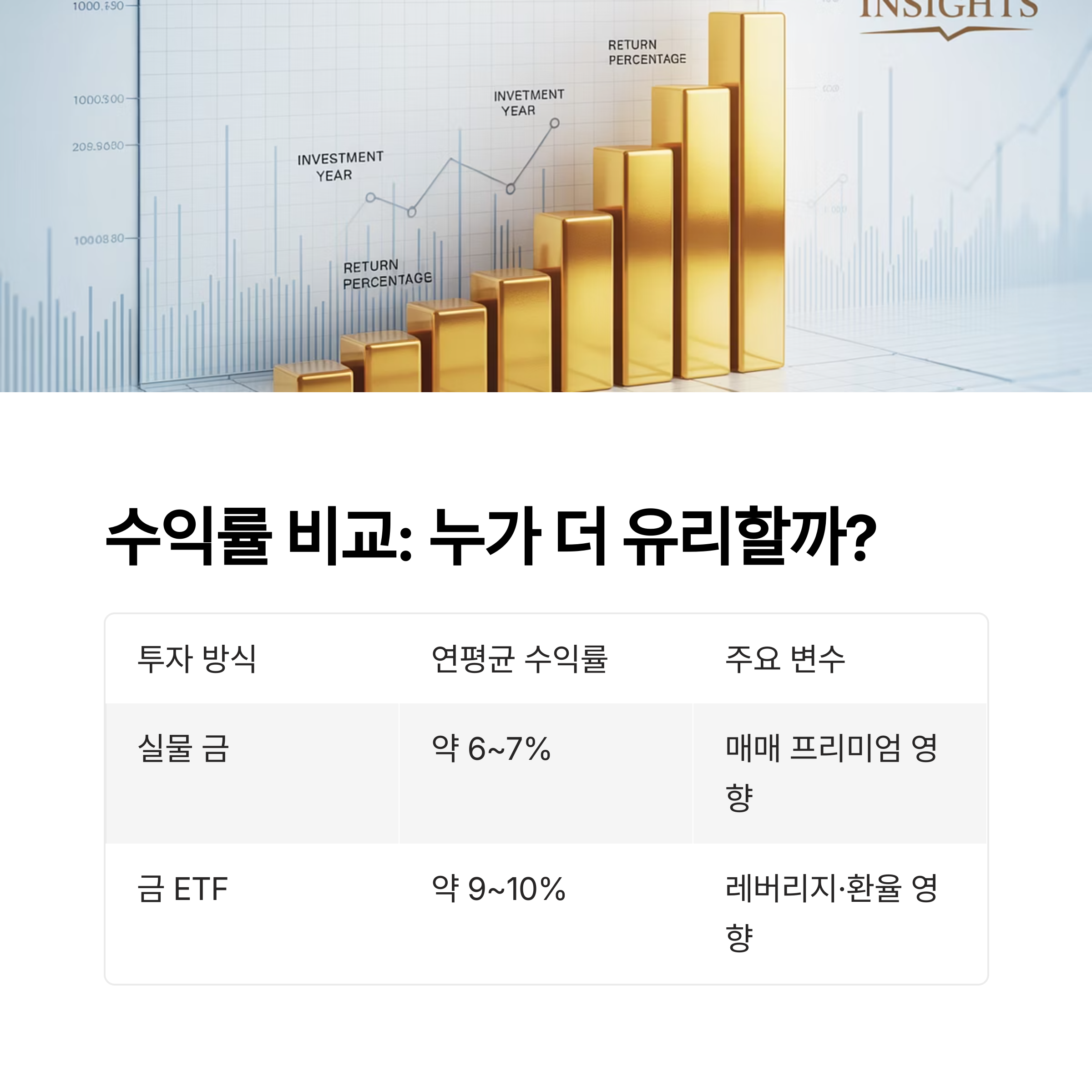 금 투자를 고려 중이라면, 실물 금과 ETF 중 어떤 방식이 수익률에 유리할까요?