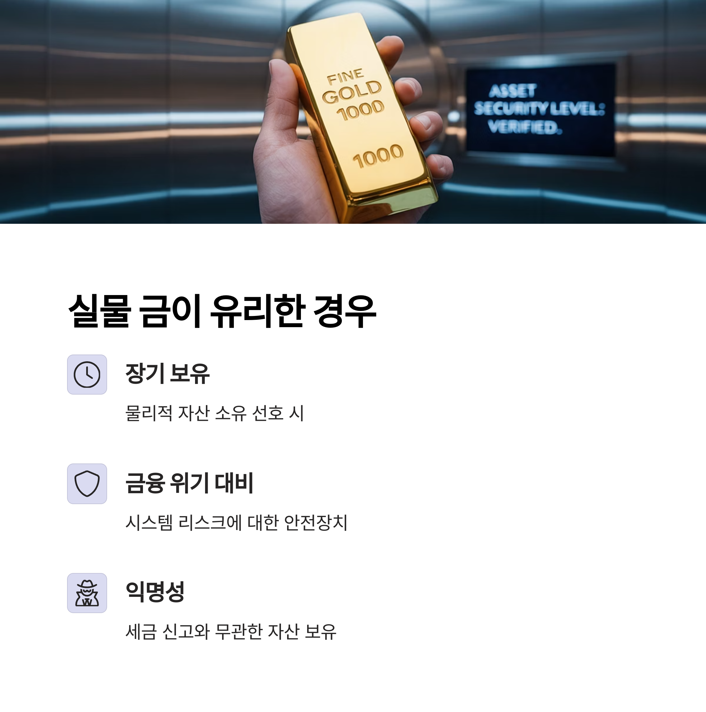 실물 금은 ‘위기 대비 수단’으로는 최적화된 방식입니다.