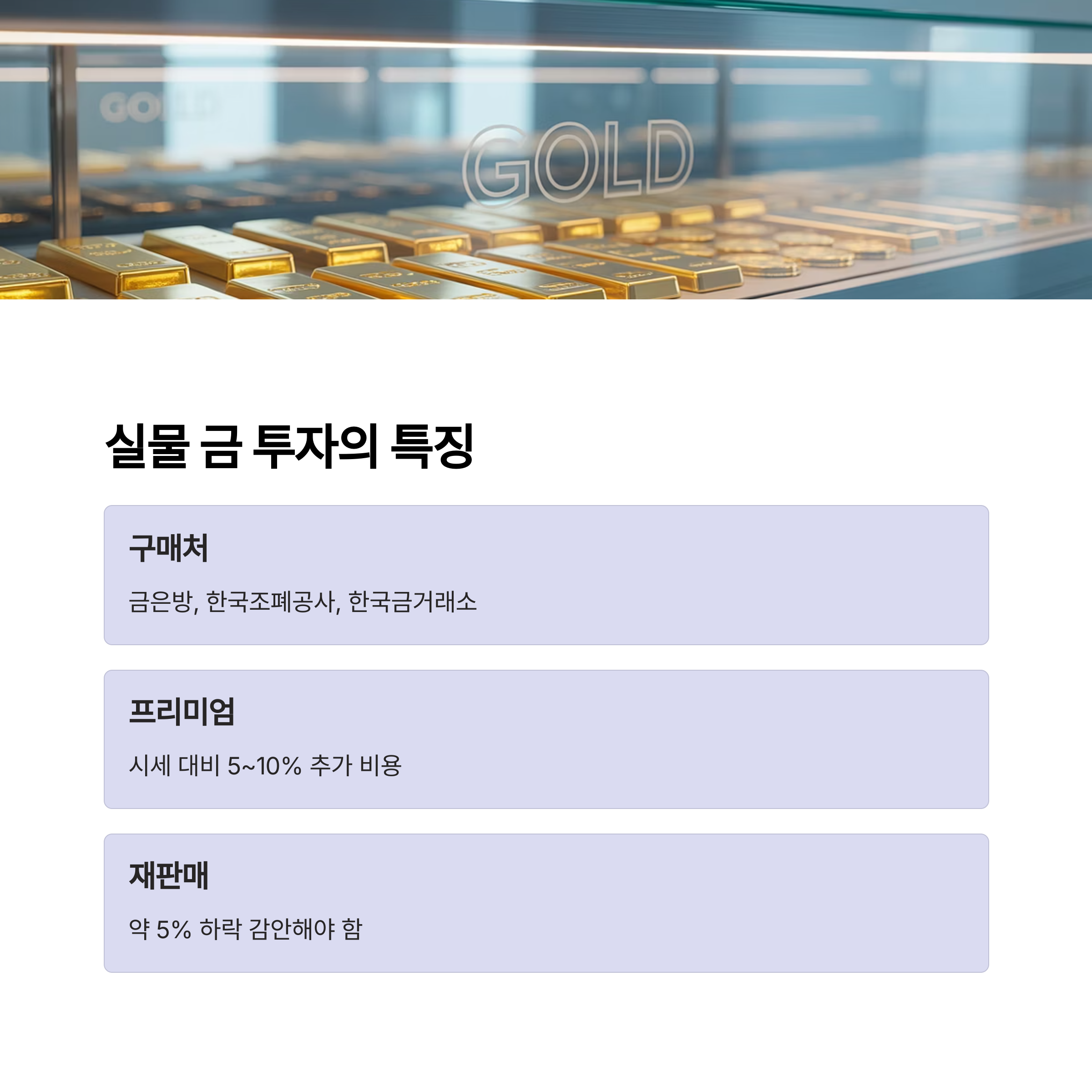 1. 실물 금 투자, 안전하지만 비용 부담 존재
