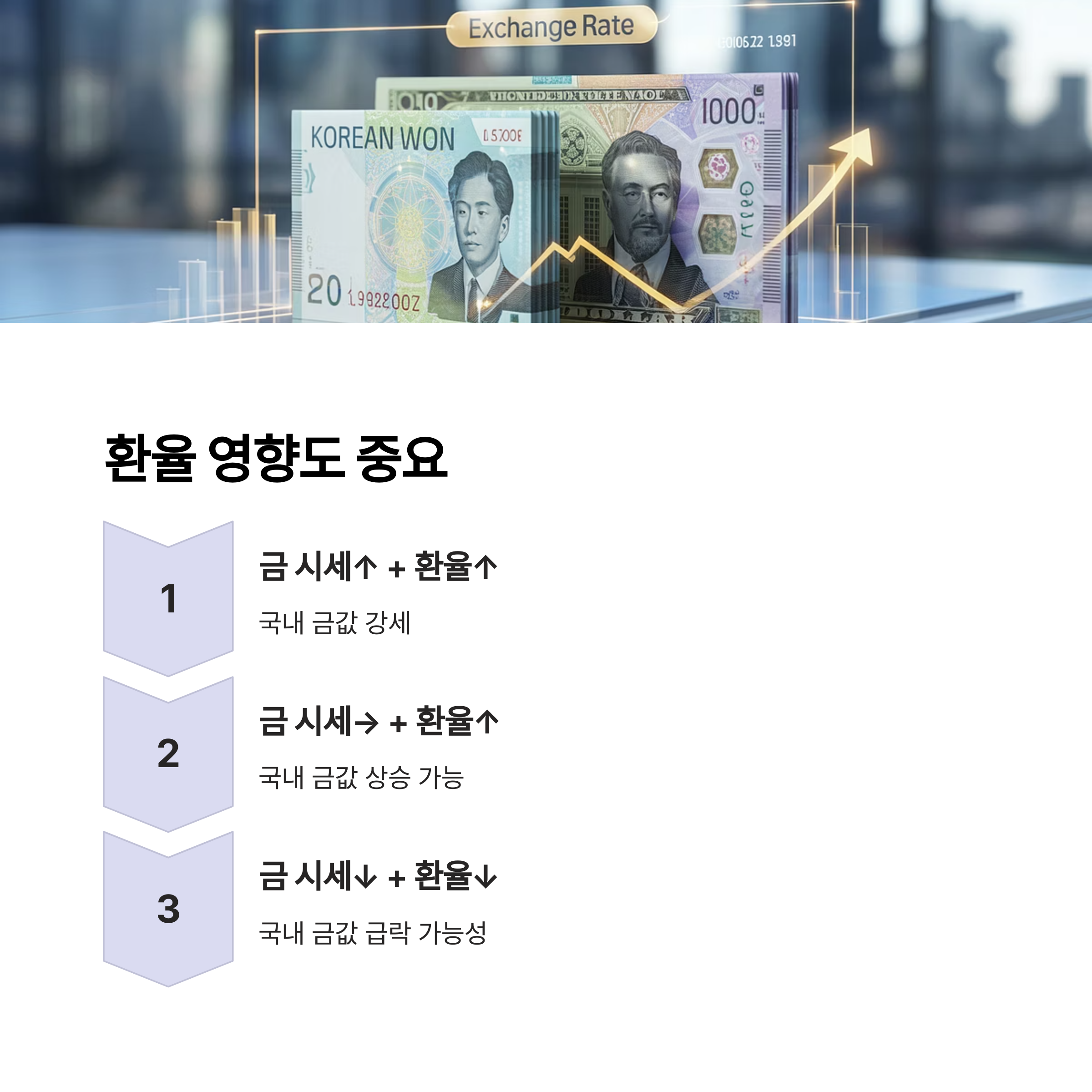 | 금 시세 보합 + 환율 상승 | 국내 금값 상승 가능 |