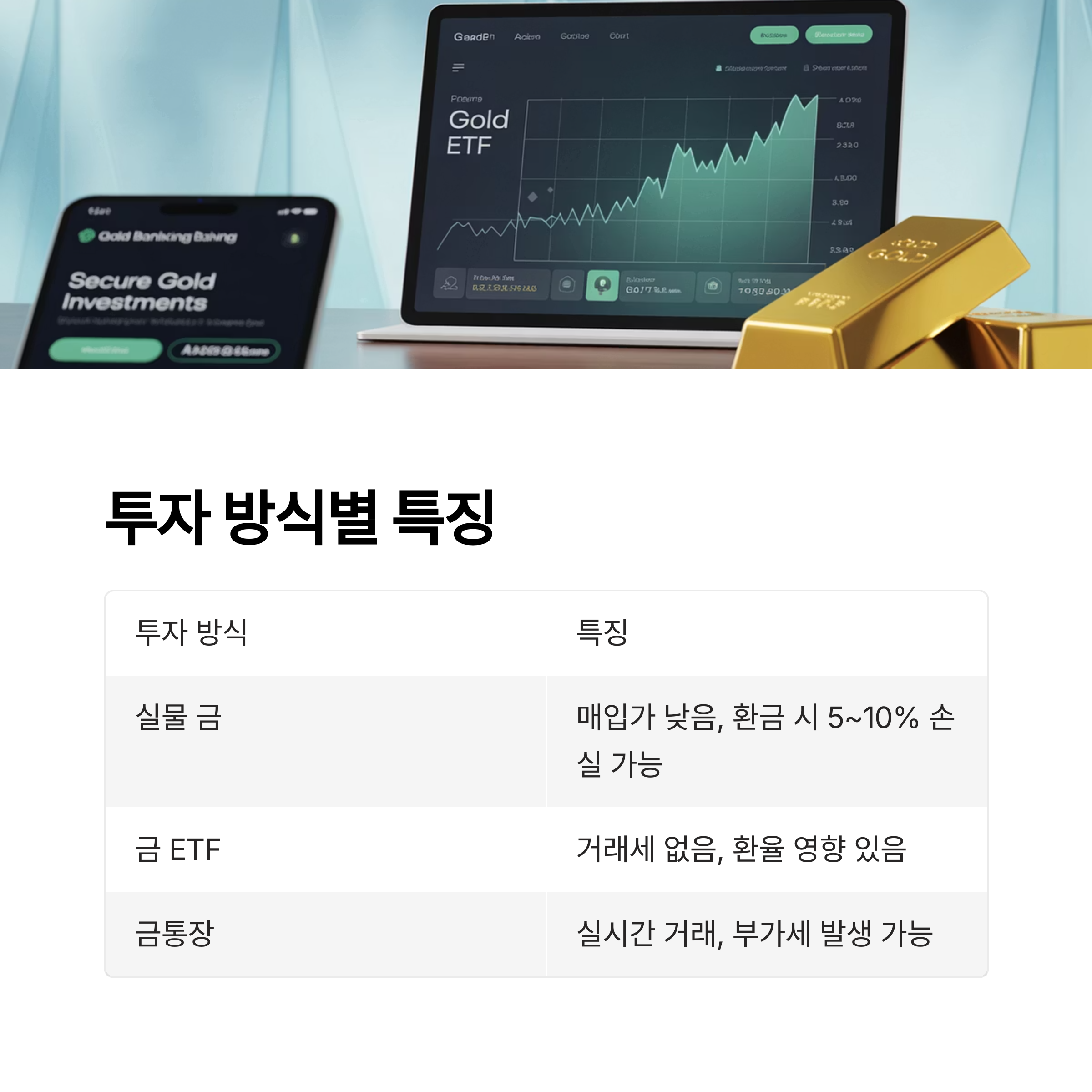 | 실물 금 | 매입가 낮음, 환금 시 손실 가능 |