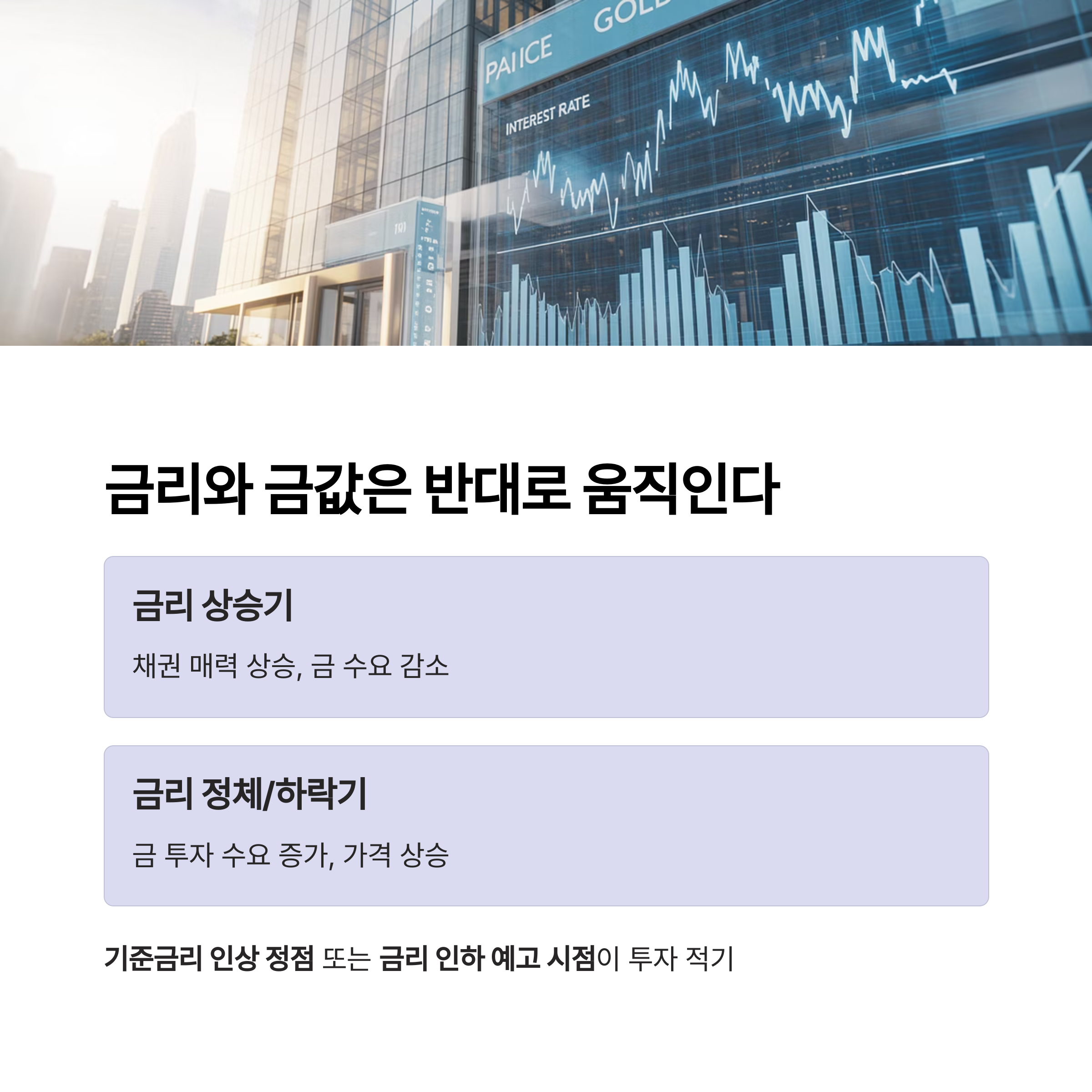 금리는 금 가격과 반대로 움직이는 경향이 있습니다.