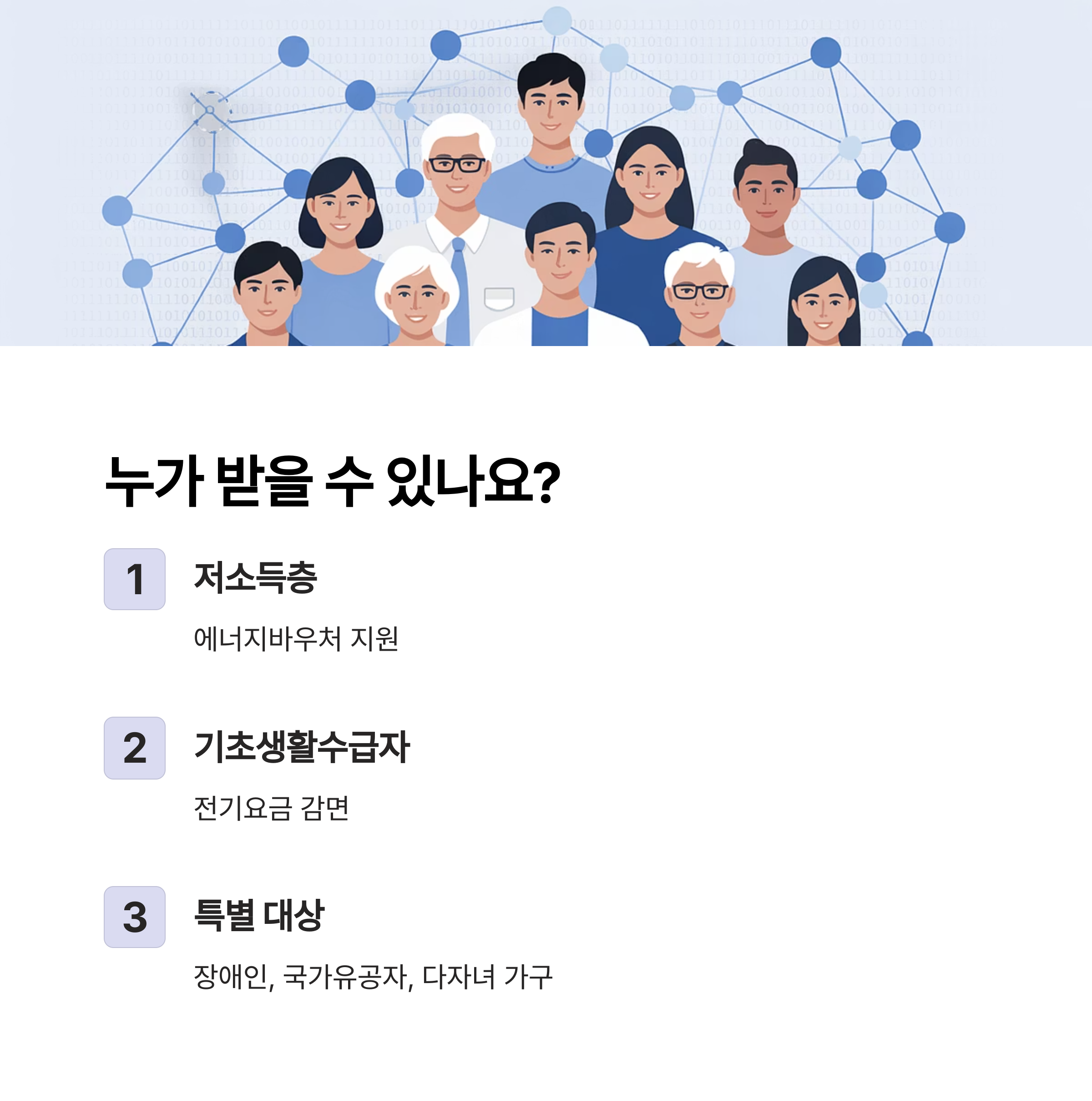 | 전기요금 감면 | 장애인·국가유공자·다자녀 등 | 월 최대 1만6천원 감면 |