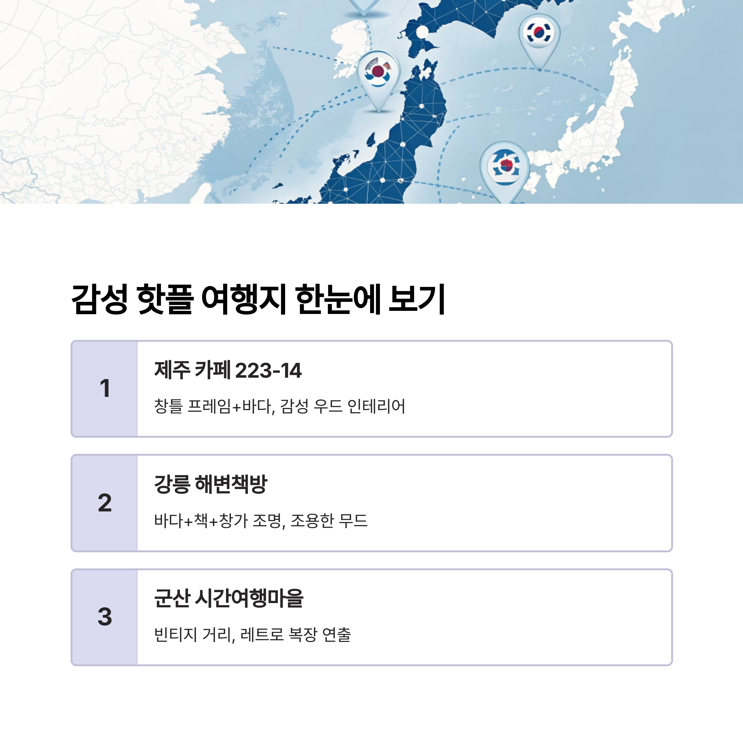 감성 핫플 여행지 요약표