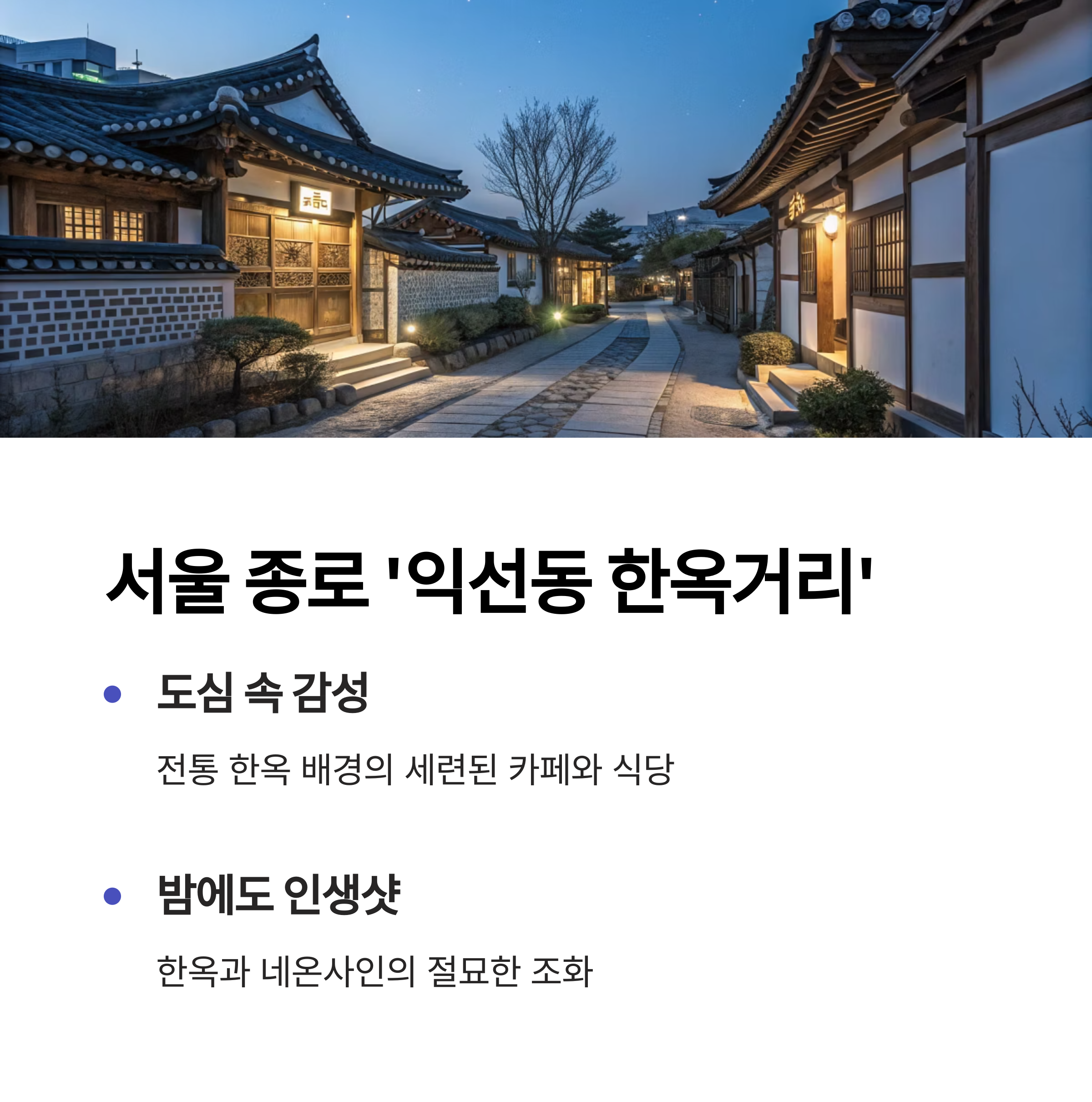 | 서울 | 익선동 | 전통+네온 조화, 한옥 감성 카페 |
