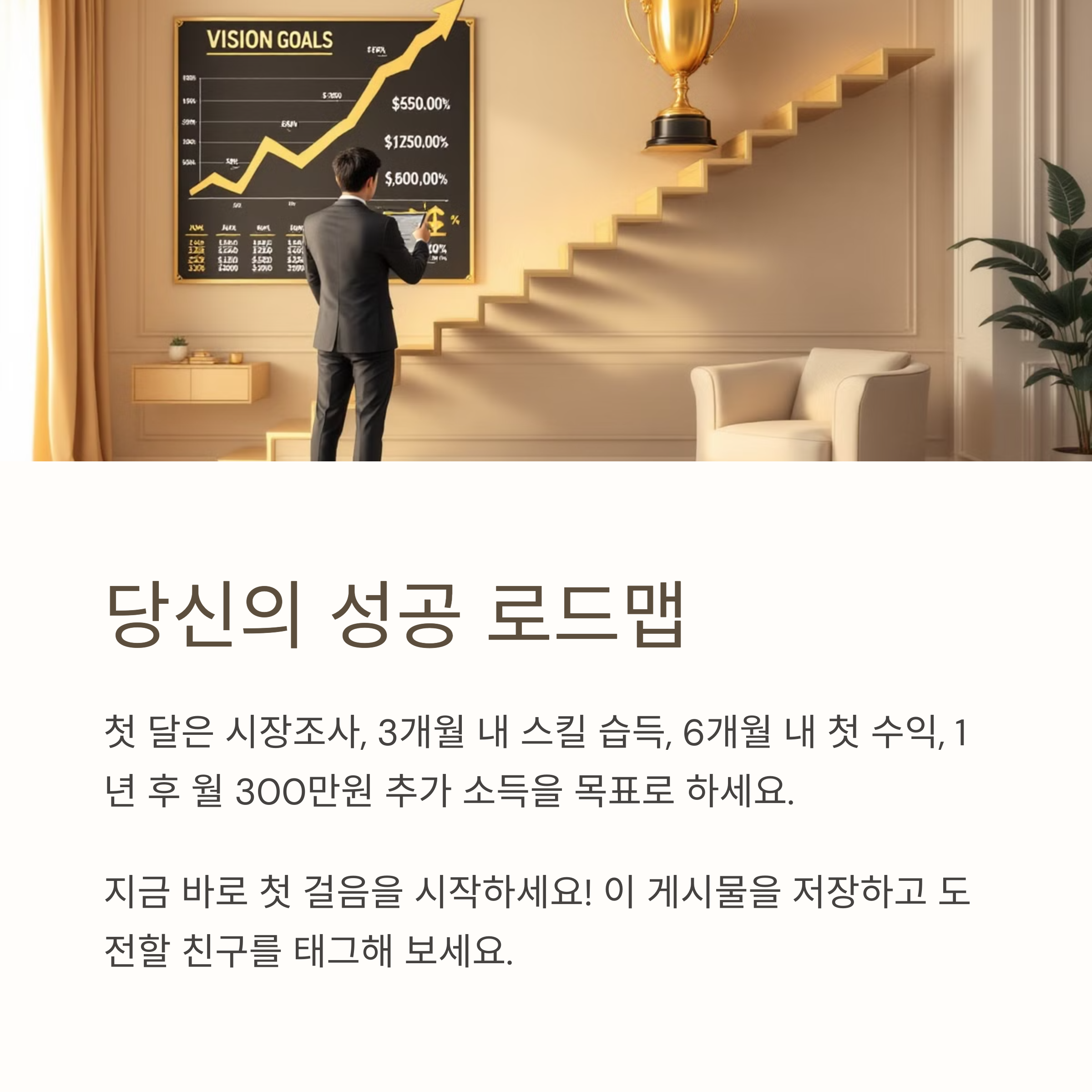 • ✔ 첫 달 목표 설정 (예: 월 30만 원 수익 창출)