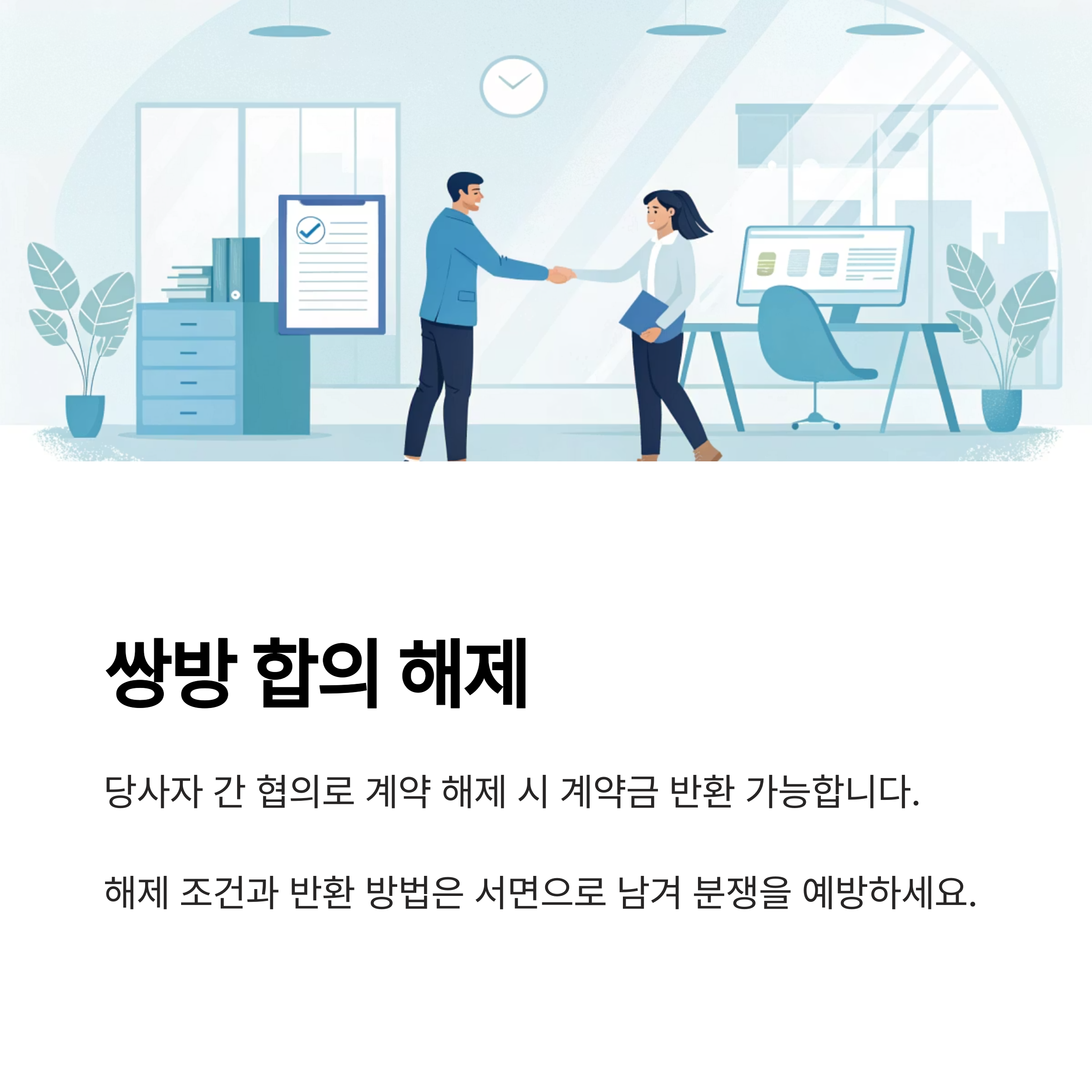 | 쌍방 합의 해제 시? | 계약금 반환 가능 |