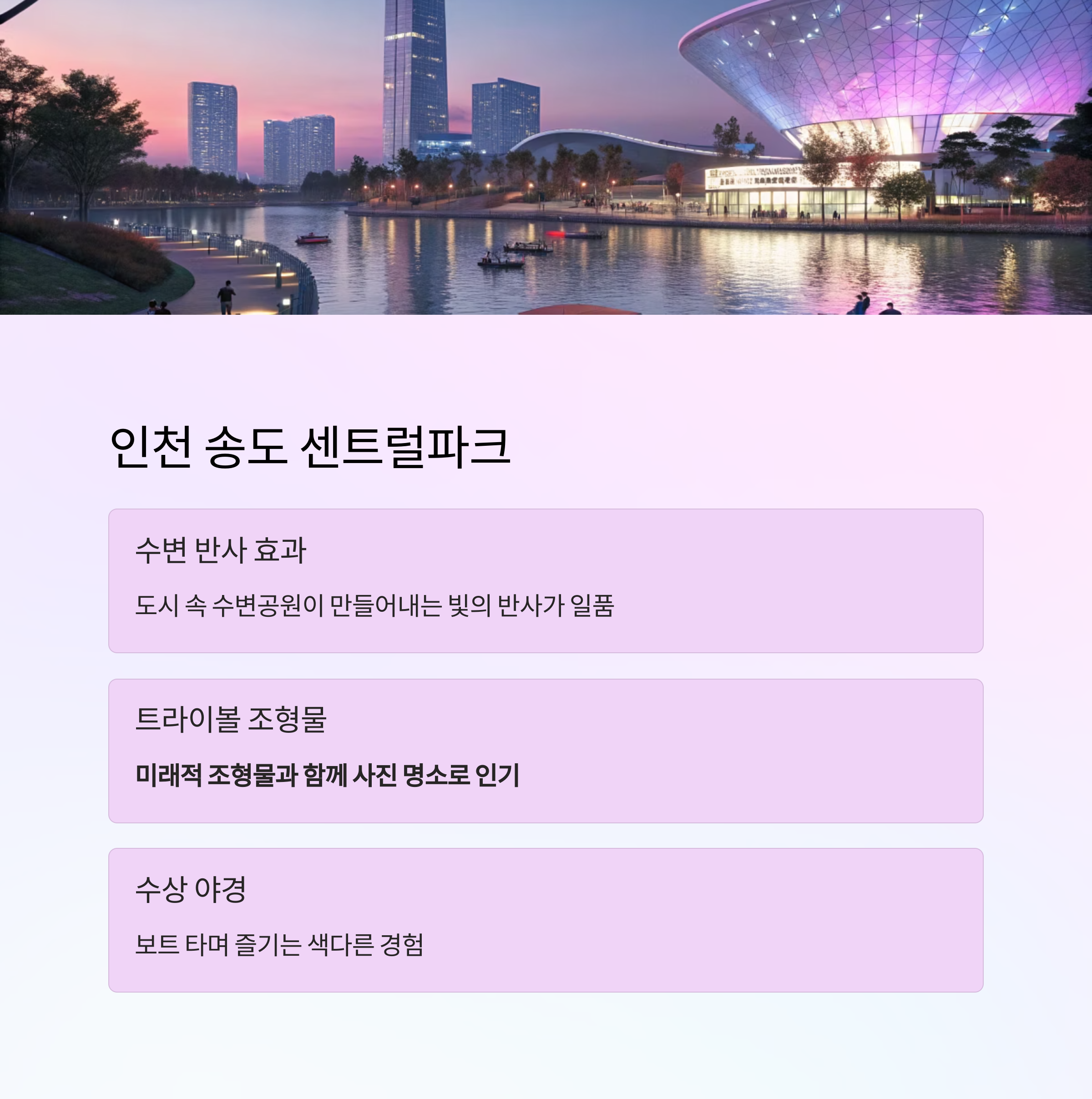 | 인천 | 송도 센트럴파크 | 수변 반사 야경 |