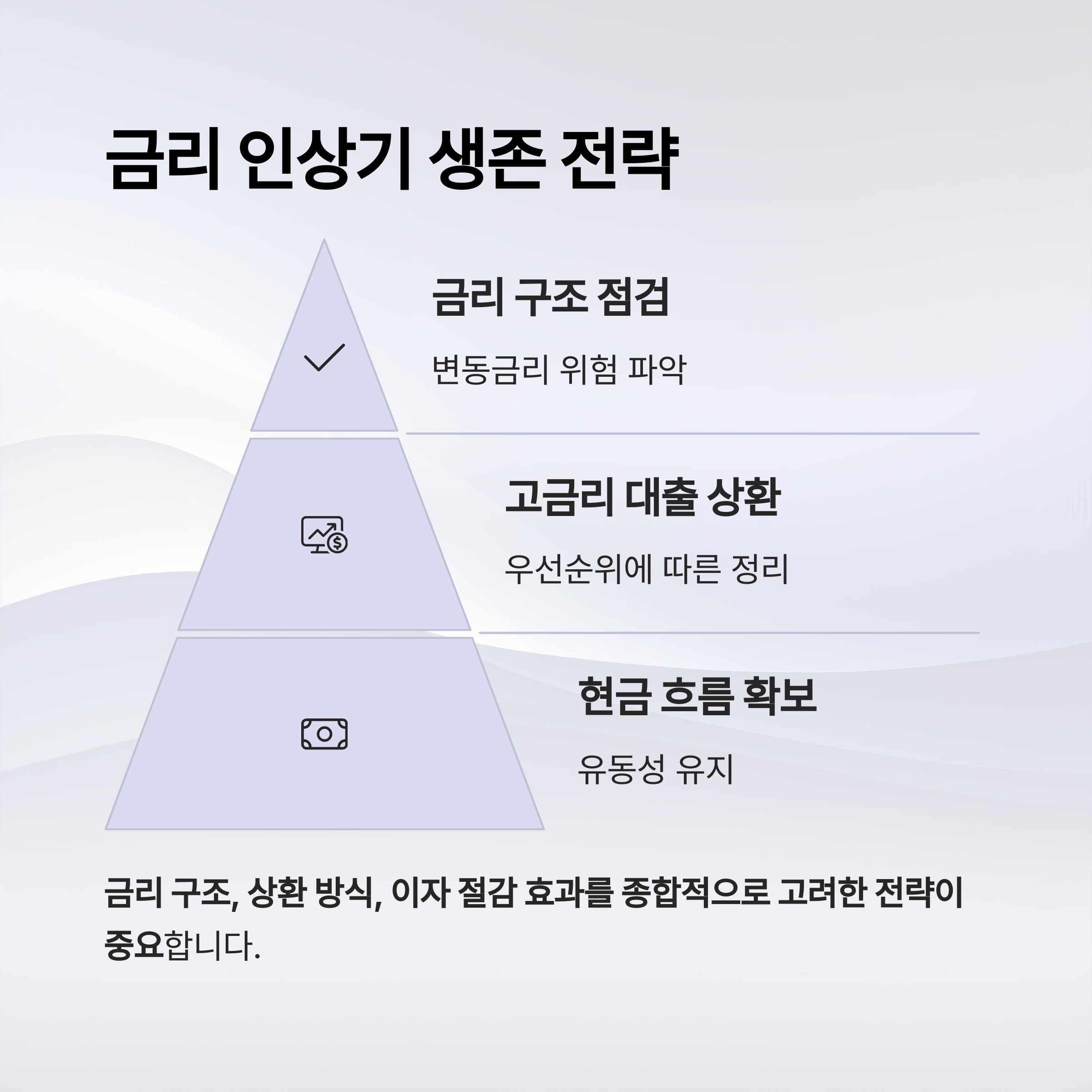 따라서 금리 인상기에는 무작정 갚기보다, 이자 구조를 정확히 파악하고 우선순위에 따라 상환하는 전략이 필요합니다.