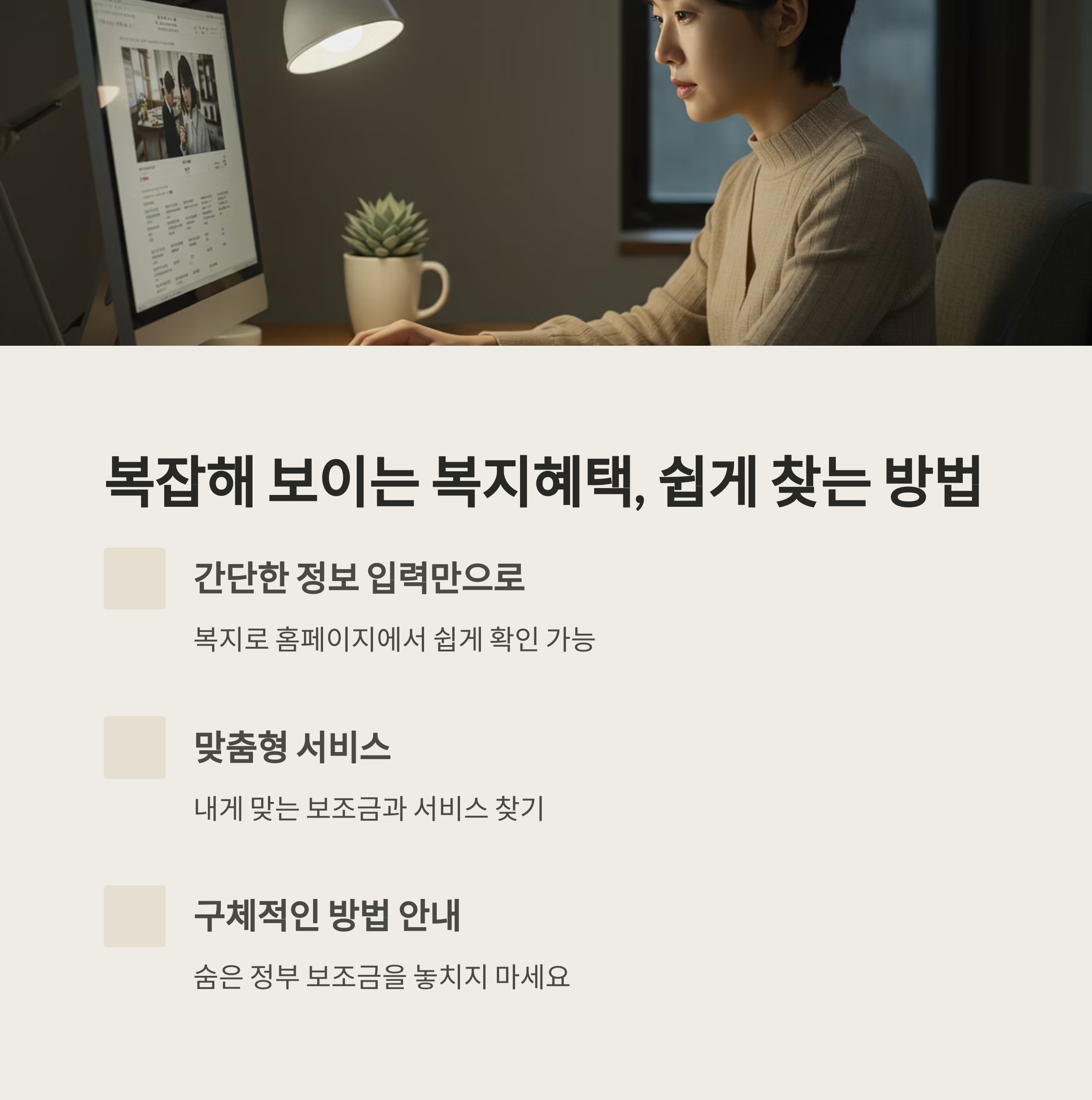 정부 보조금이나 복지혜택은 조건이 다양하고 복잡해 보여 어렵게 느껴질 수 있습니다.