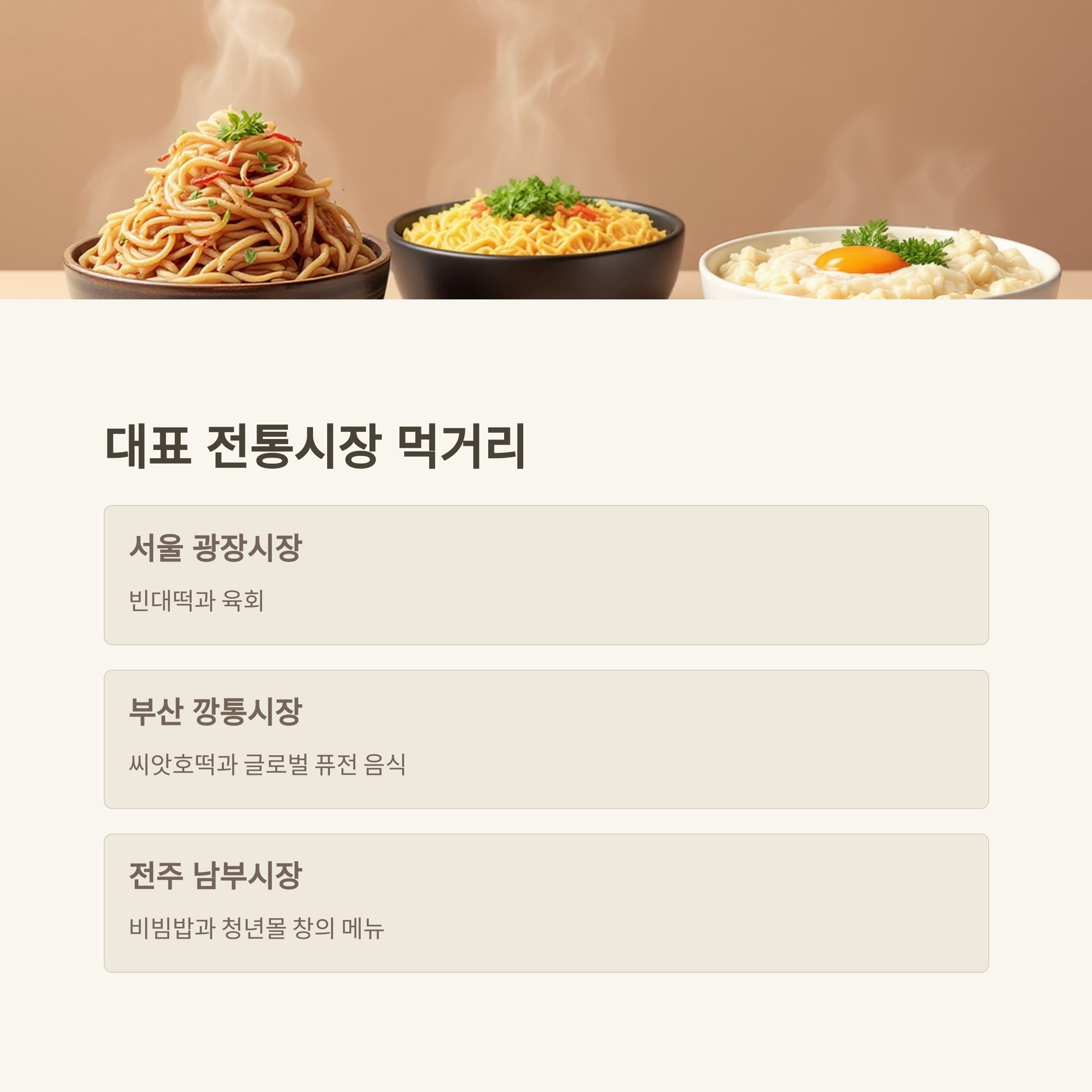 | 대표 시장 | 서울 광장시장, 부산 깡통시장, 전주 남부시장 등 |