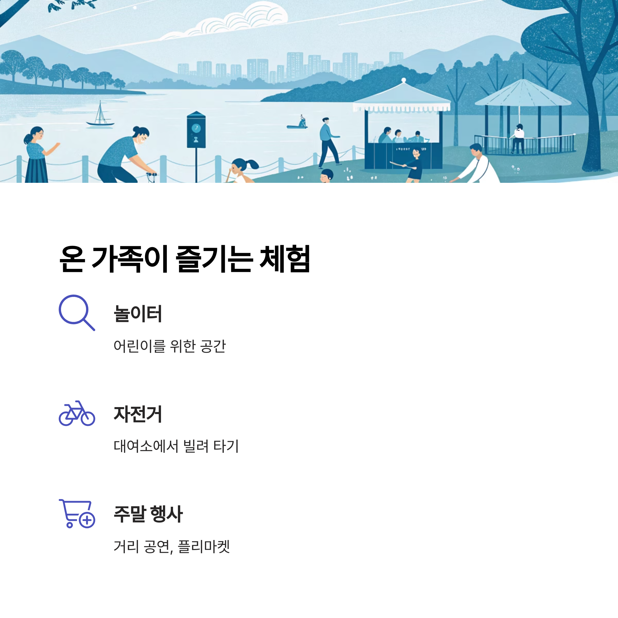 아이들과 함께라면 미리 음료나 간식 준비, 자외선 차단제, 여벌옷 등을 챙기는 것이 좋습니다.