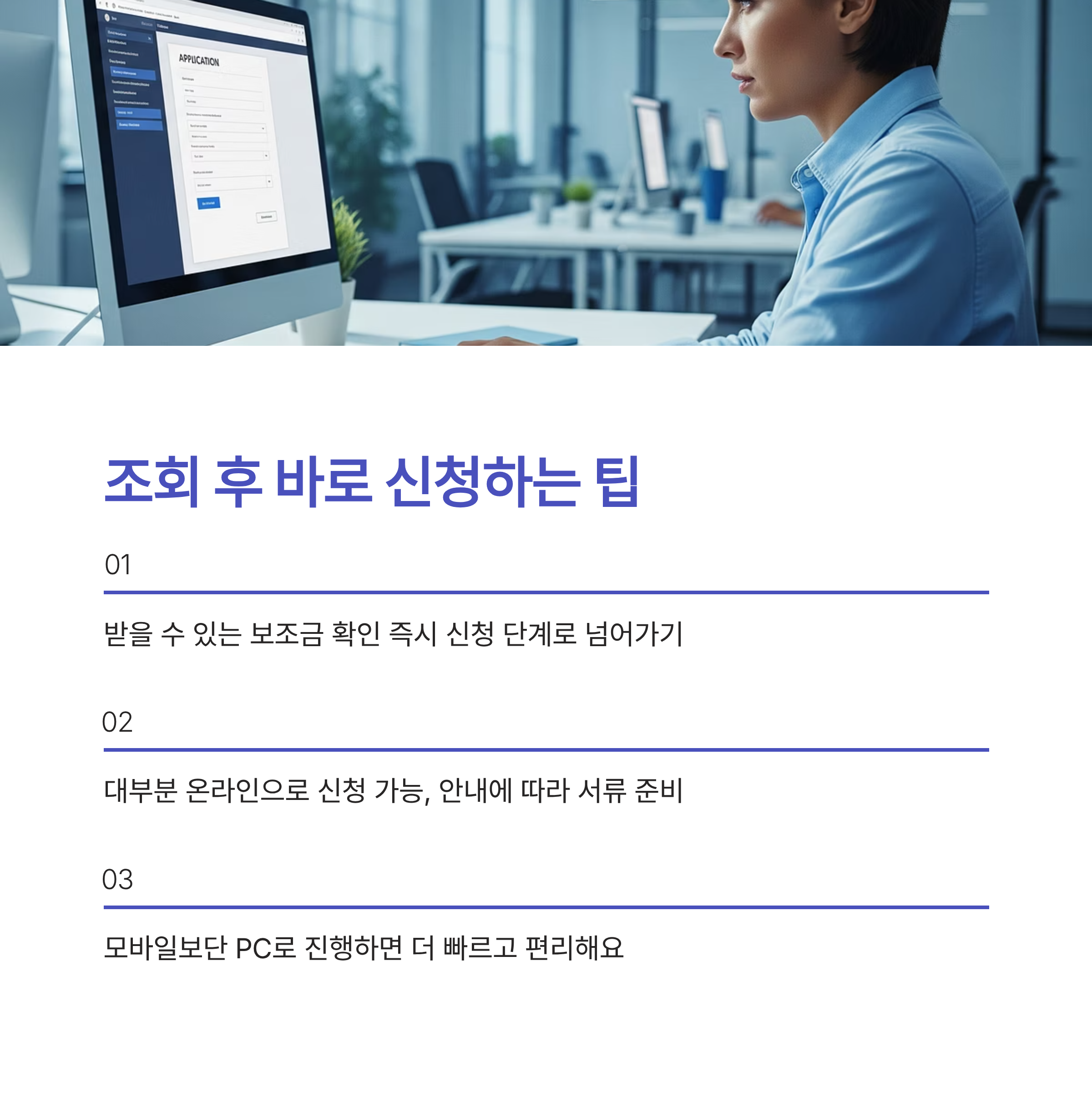 받을 수 있는 보조금이 확인됐다면, 바로 신청 단계로 넘어가세요.
