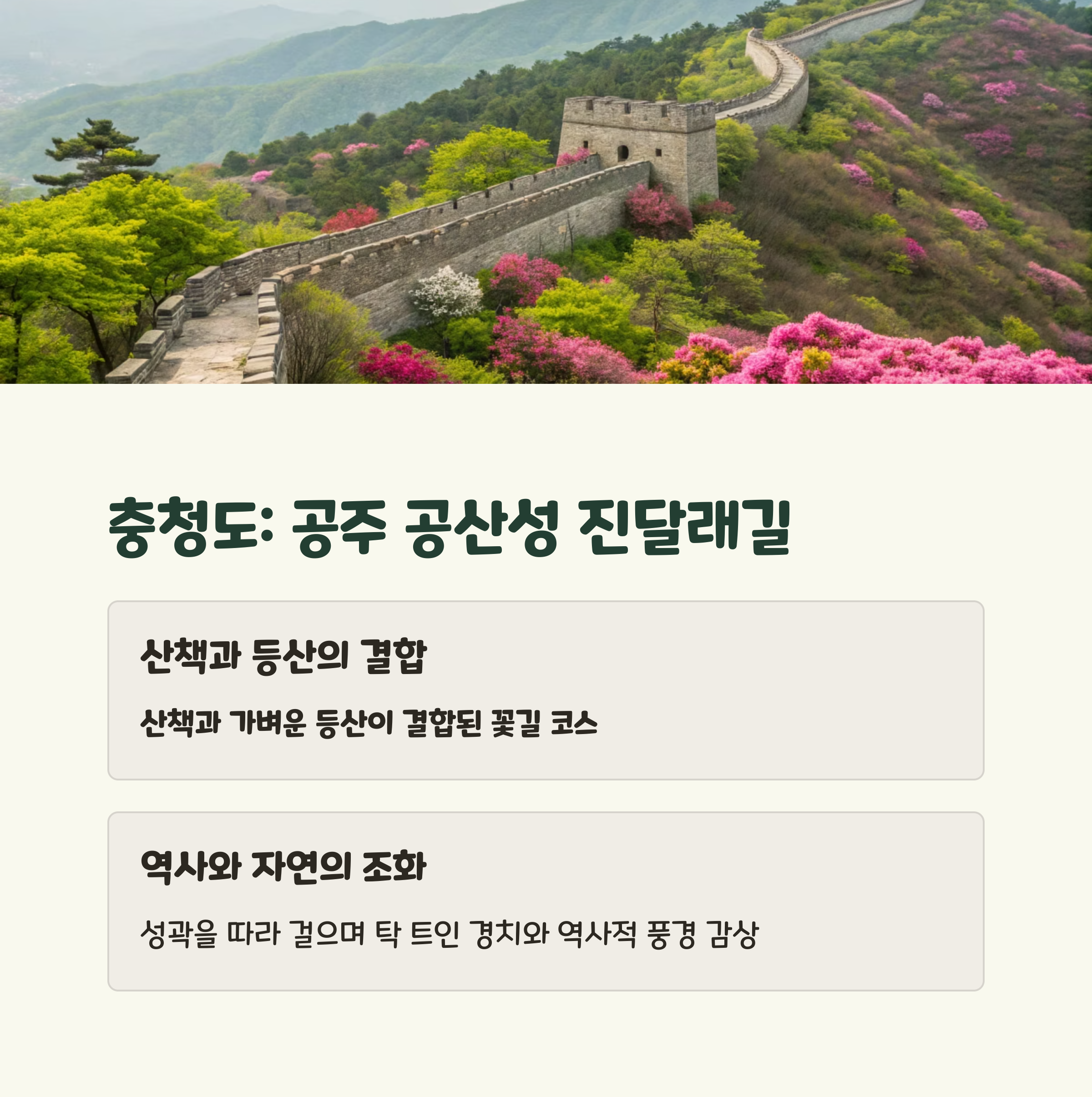 공산성의 진달래 군락지는 산책과 가벼운 등산이 결합된 꽃길 코스입니다.