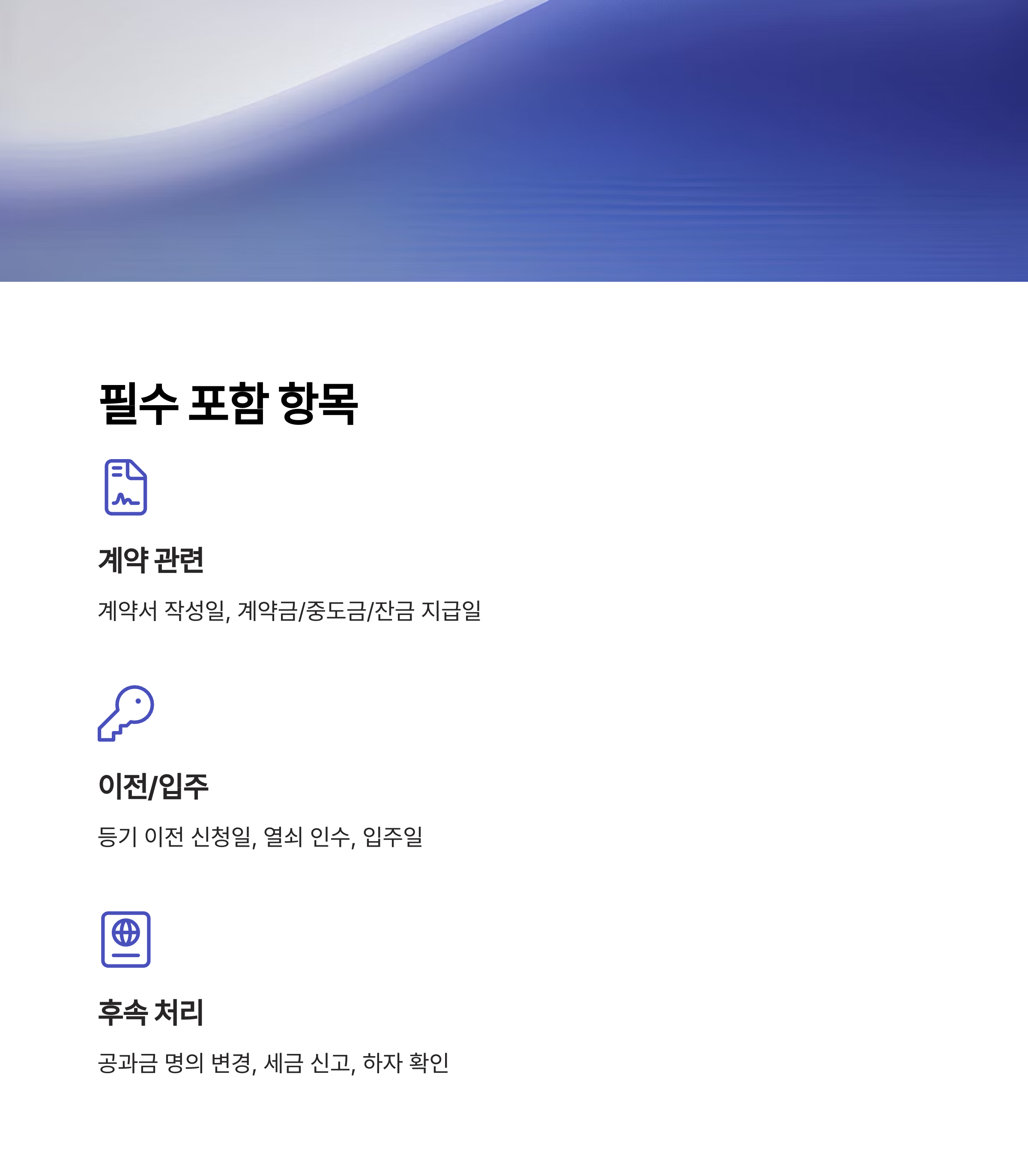 | 입주 | 2024.08.01 | 매수인 | 열쇠 인수, 관리비 명의 변경 |