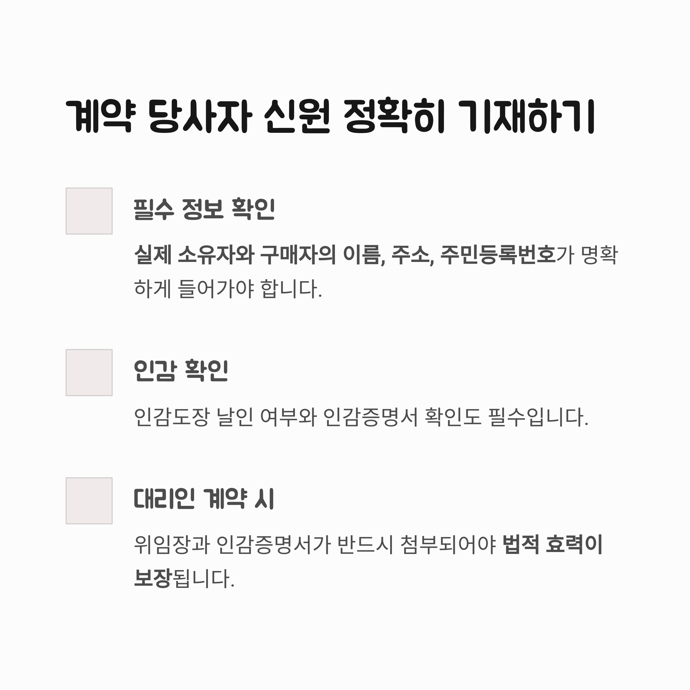 계약 당사자의 신원은 반드시 '정확히' 기재