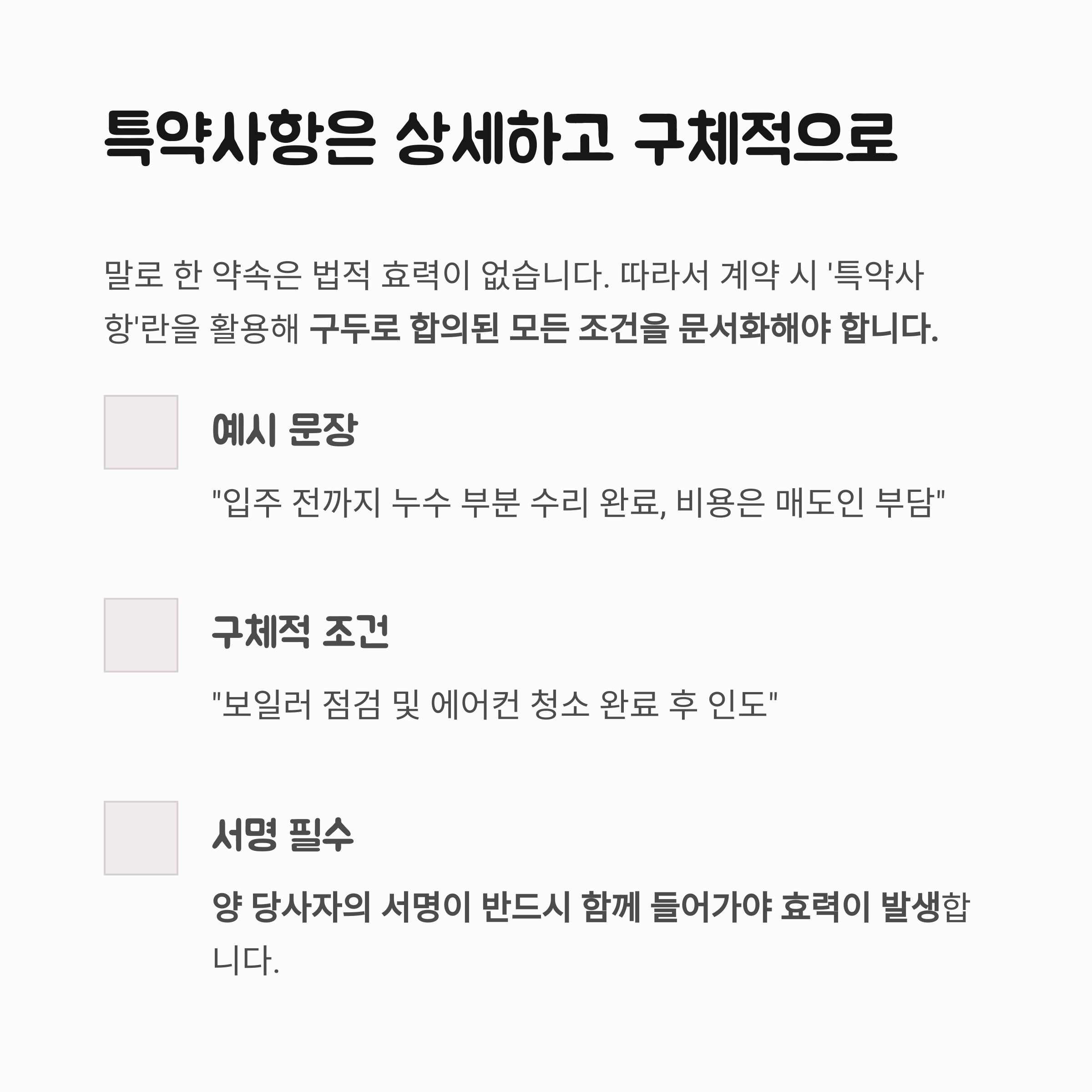특약 사항은 상세하고 구체적으로 작성