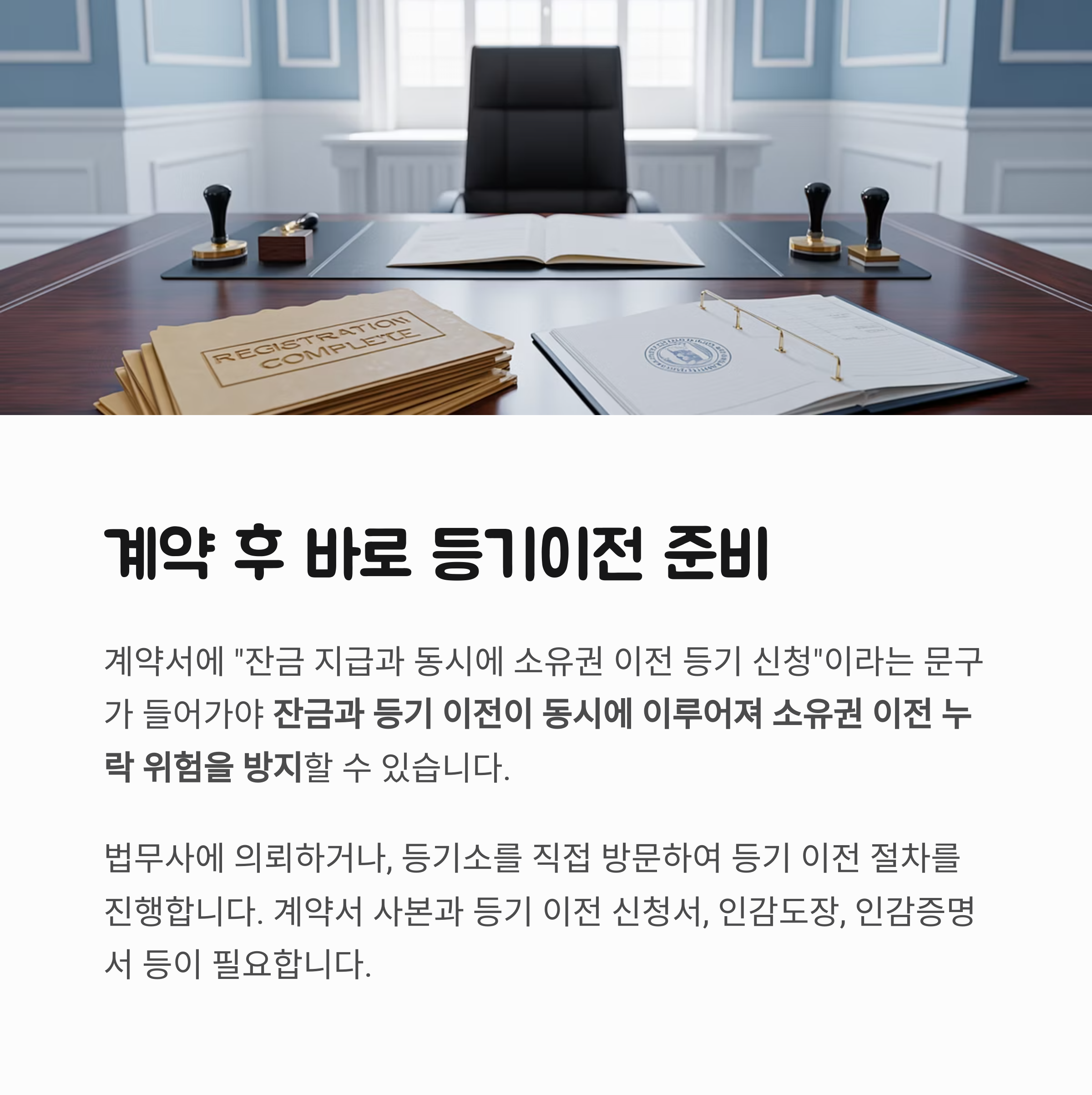 계약서에 "잔금 지급과 동시에 소유권 이전 등기 신청"이라는 문구가 들어가야