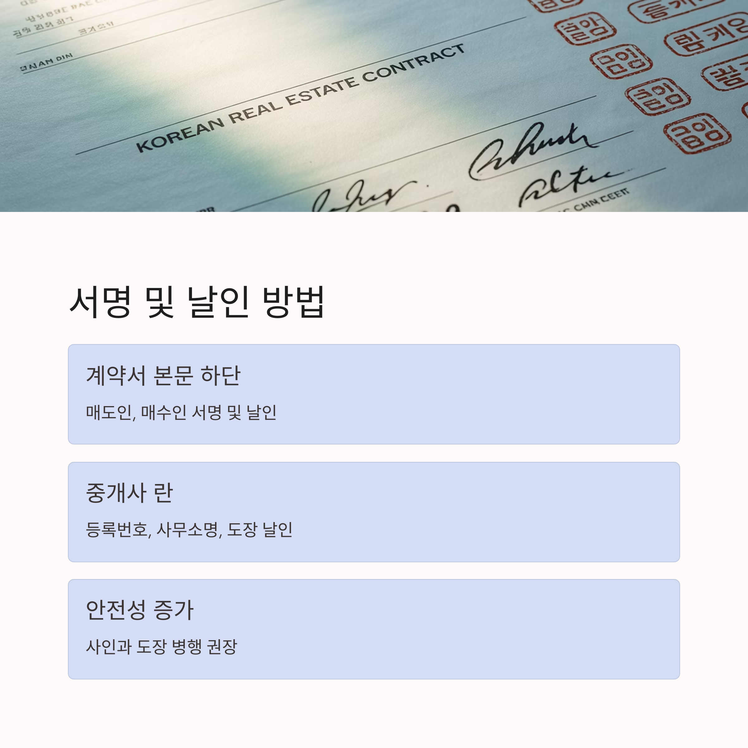 서명 및 날인: 모든 당사자+중개인 포함 필수